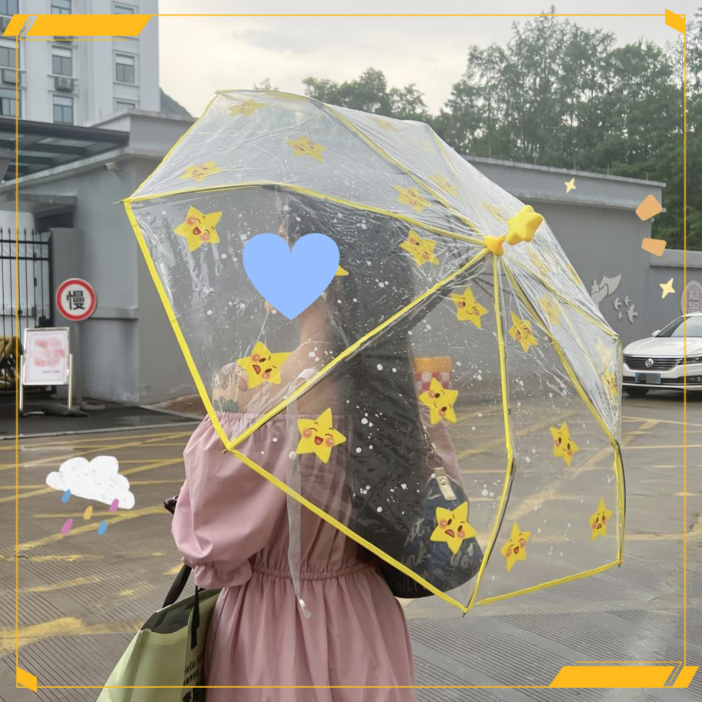 • 노란색 별 수동 투명 우산 - 두꺼운 우산 표면