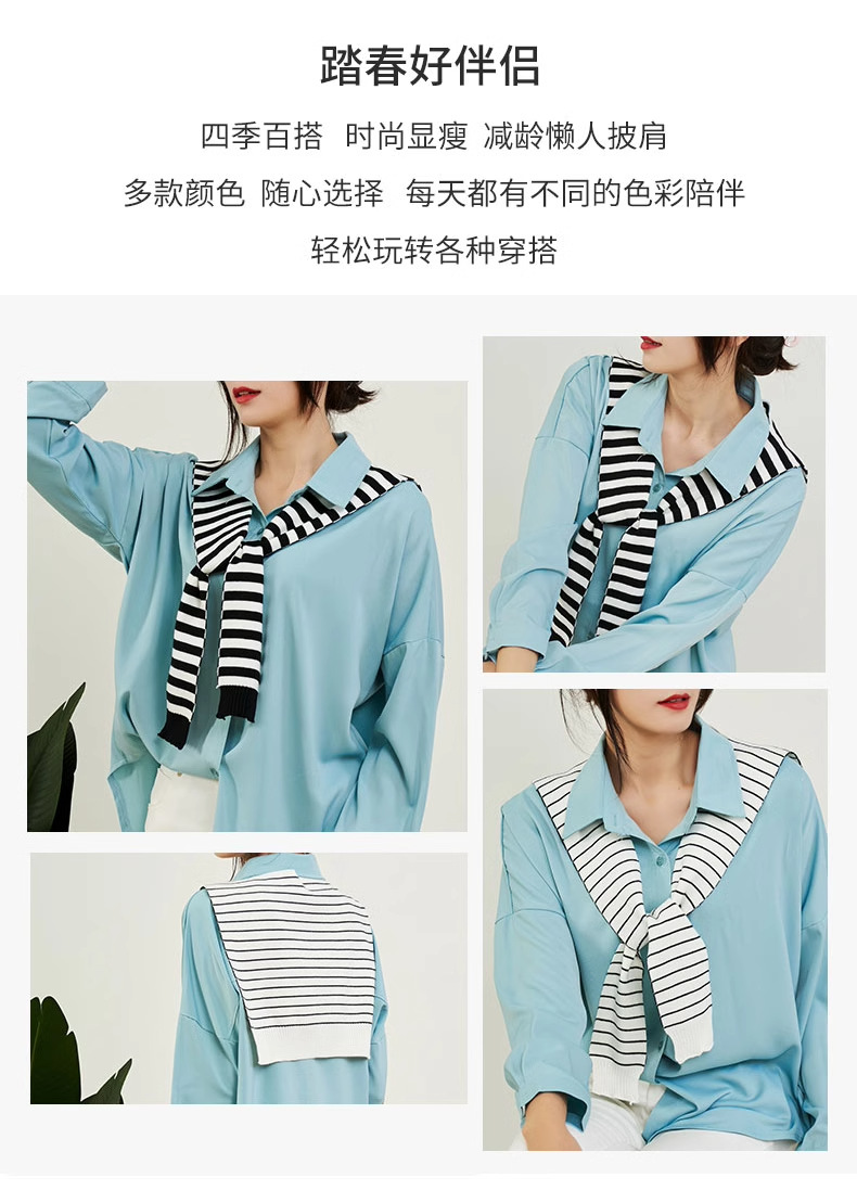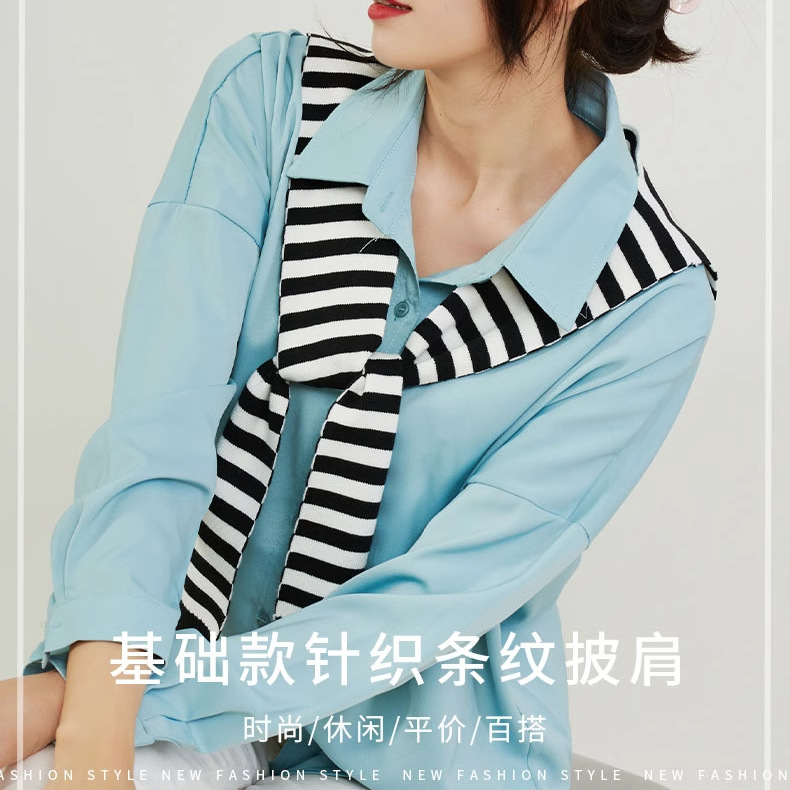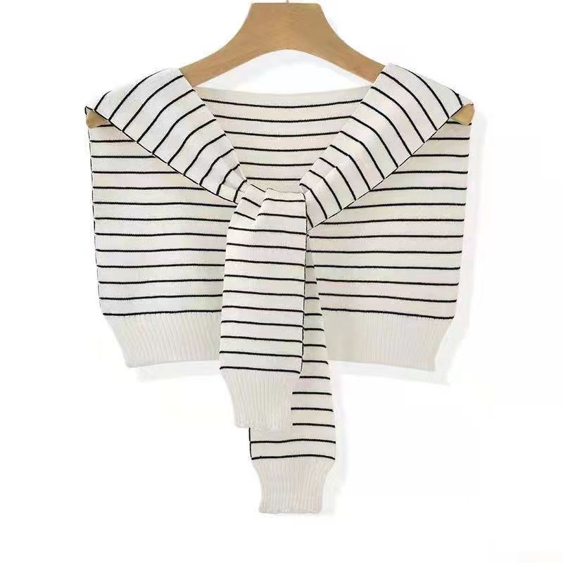 올 매치 스트라이프 니트 숄 작은 양복 조끼 일치하는 셔츠 외부 셔츠 목 보호 셔츠 봄과 가을 여름 에어컨스토어 가기