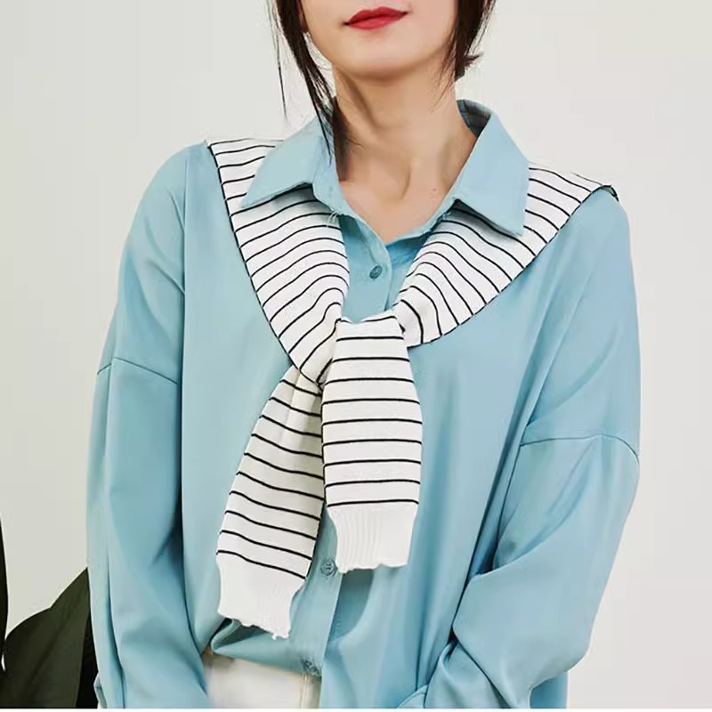 올 매치 스트라이프 니트 숄 작은 양복 조끼 일치하는 셔츠 외부 셔츠 목 보호 셔츠 봄과 가을 여름 에어컨