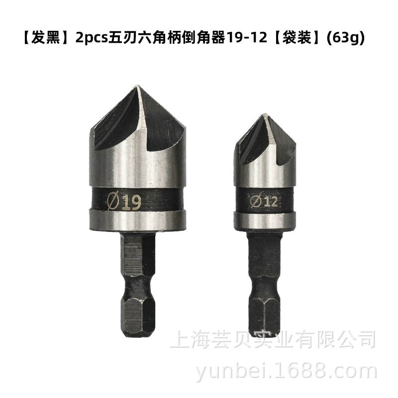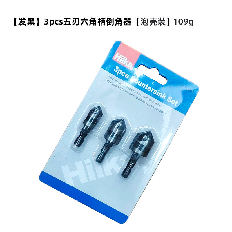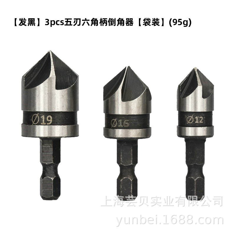 3 개의 12/16/19mm 모따기 카운터 싱크 목공 구멍 오프너로 구성된 육각 라운드 핸들 90 도 5 블레이드 챔퍼 세트