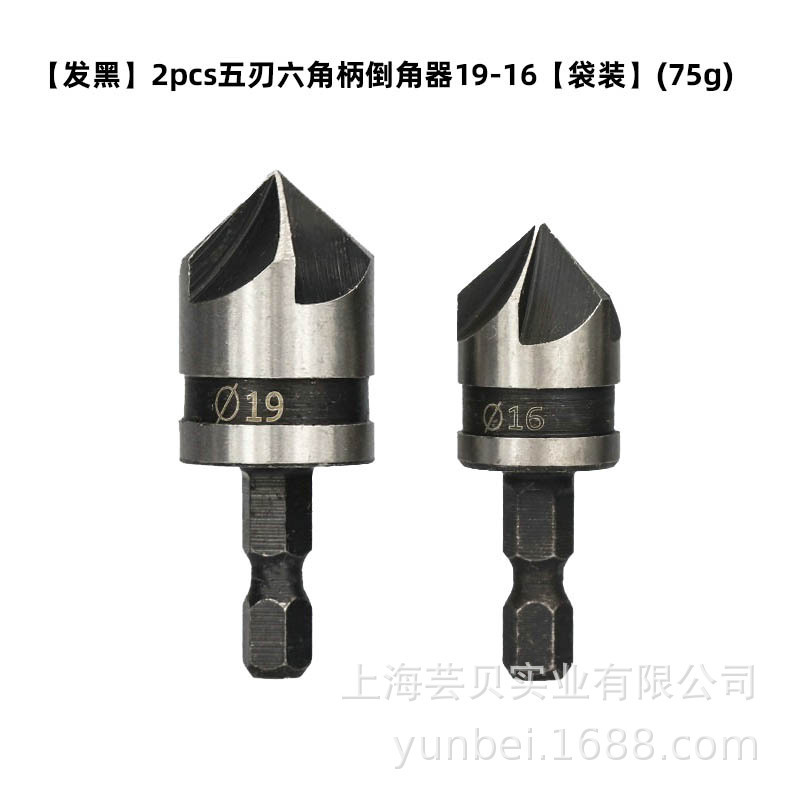 3 개의 12/16/19mm 모따기 카운터 싱크 목공 구멍 오프너로 구성된 육각 라운드 핸들 90 도 5 블레이드 챔퍼 세트스토어 가기