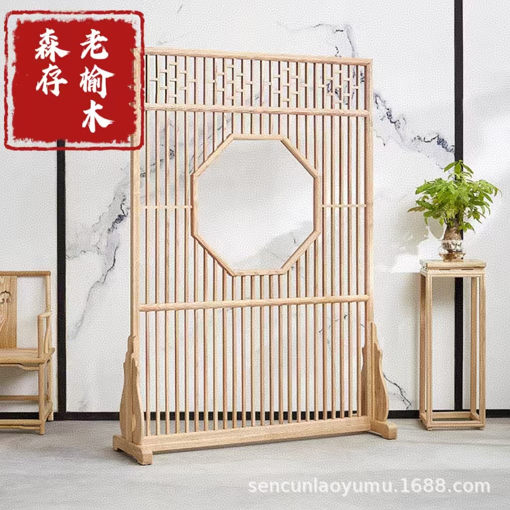 홈 스크린 파티션 거실 새로운 중국 스타일 오래된 느릅 나무 입구 문 그늘 시트 스크린 단단한 나무 중공 현관 장식 파티션스토어 가기
