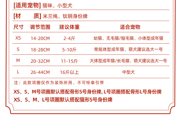 • **XS-목 둘레 14-20CM에 적합(권장 1.0-2kg )**