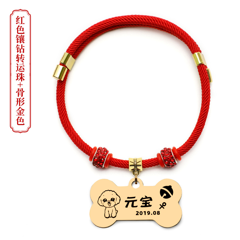 • **레드 다이아몬드 트랜스퍼 비즈 + 뼈 모양의 골드**