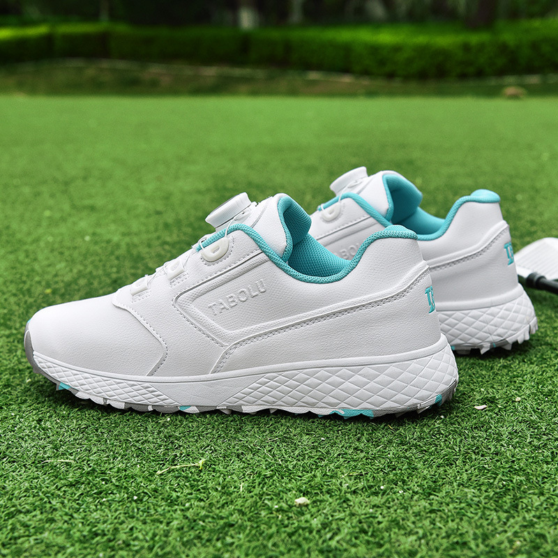 남성과 여성을위한 골프 신발 편안한 방수 자동 손잡이 개폐식 신발 끈 안티 슬립 고정 손톱 야외 운동화