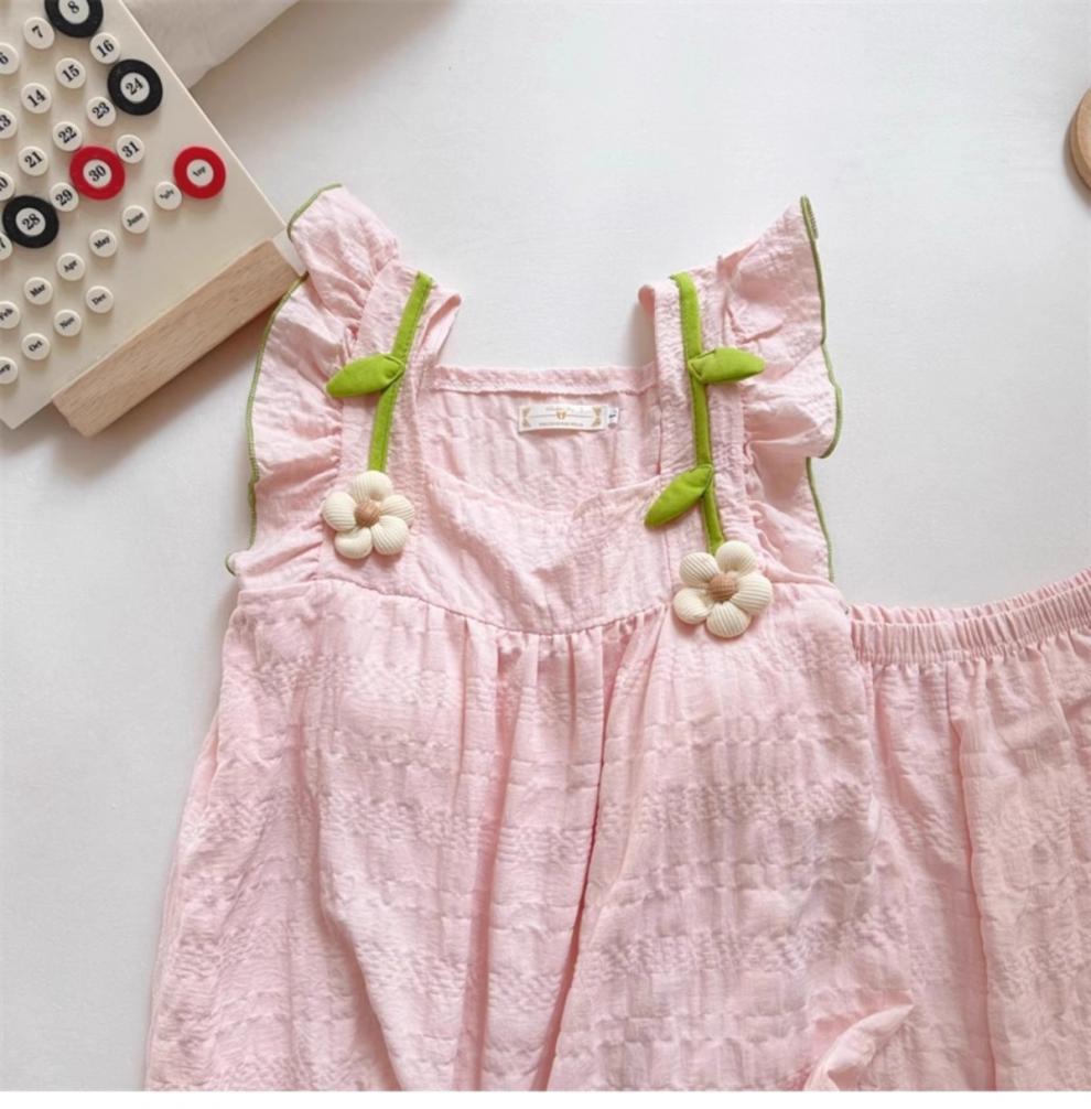 여자 잠옷 여자 여름 핑크 새로운 도착 작은 꽃 슬링 작은 비행 소매 조끼 반바지 민소매 달콤한 홈 옷스토어 가기