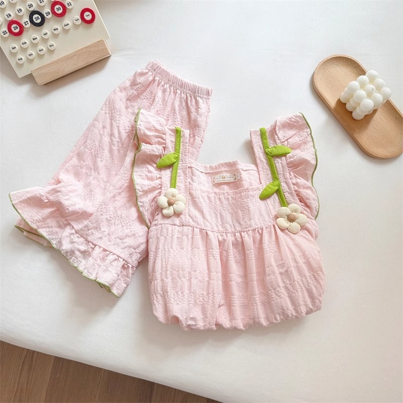 • 818-핑크 플라워 서스펜더 쇼츠