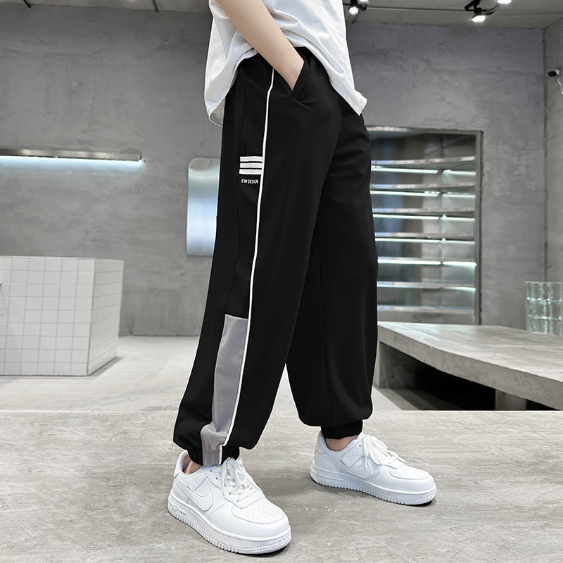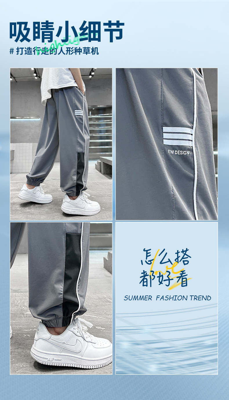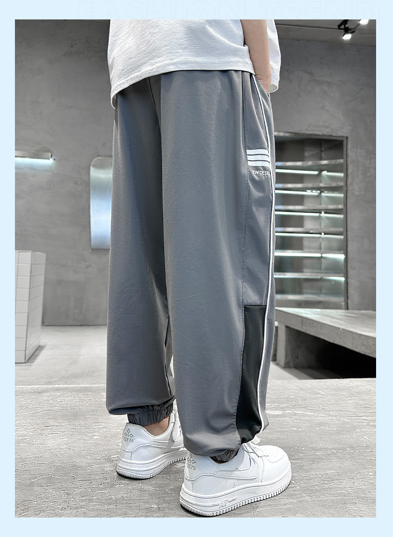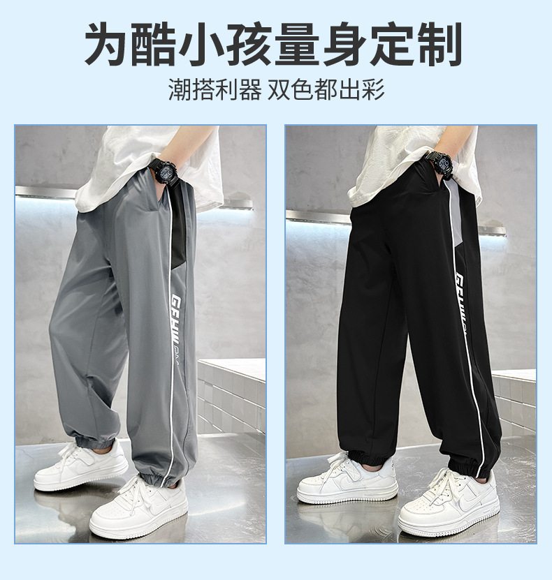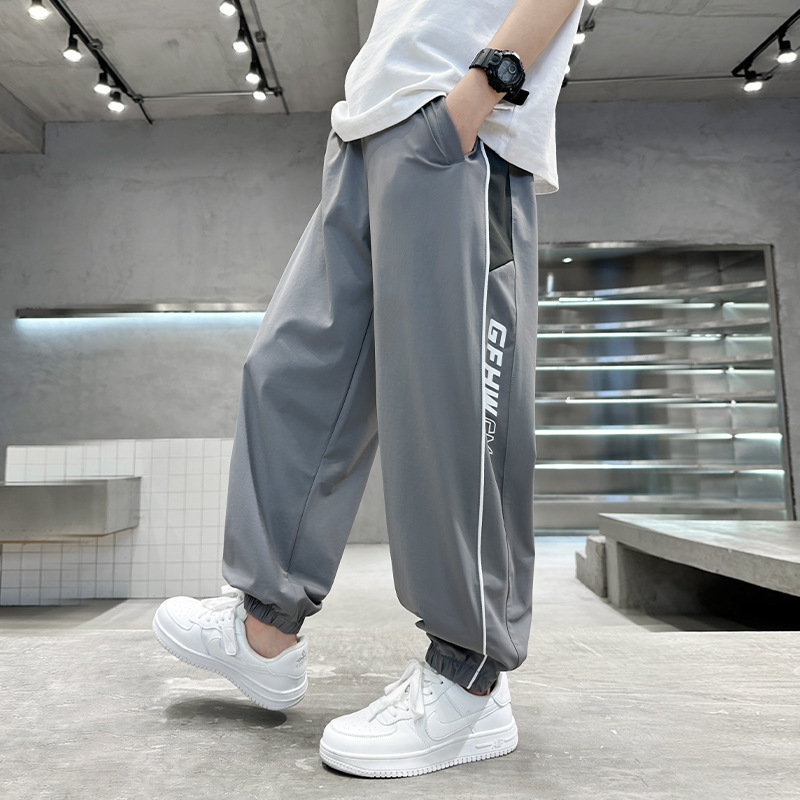 소년 바지 어린이 아이스 실크 여름 얇은 큰 어린이 2024 새로운 유행 여름 느슨한 캐주얼 바지