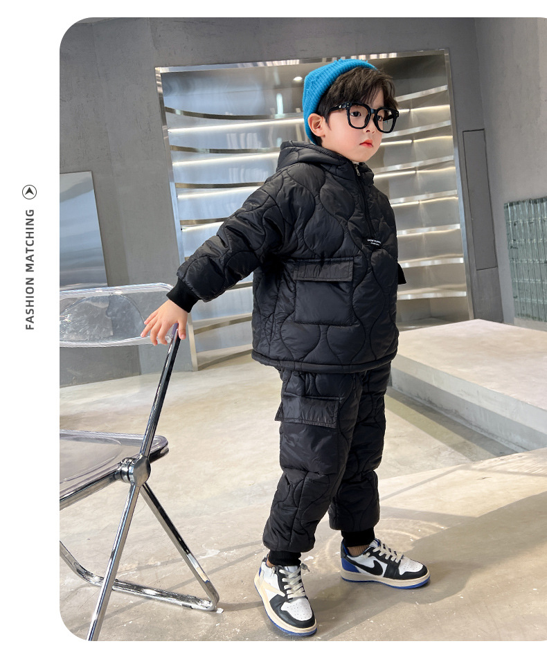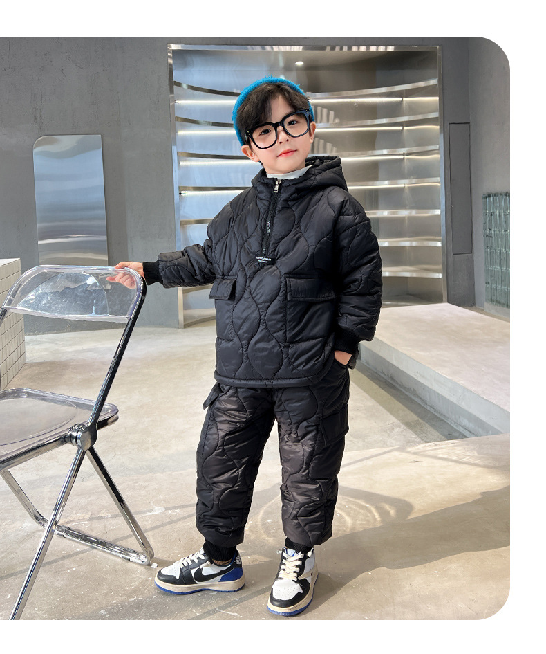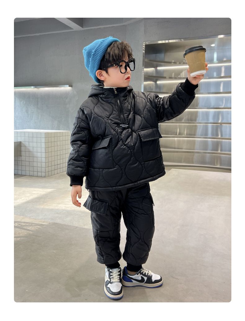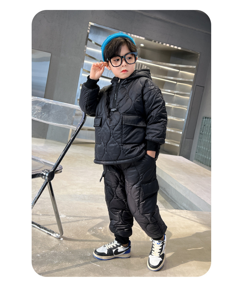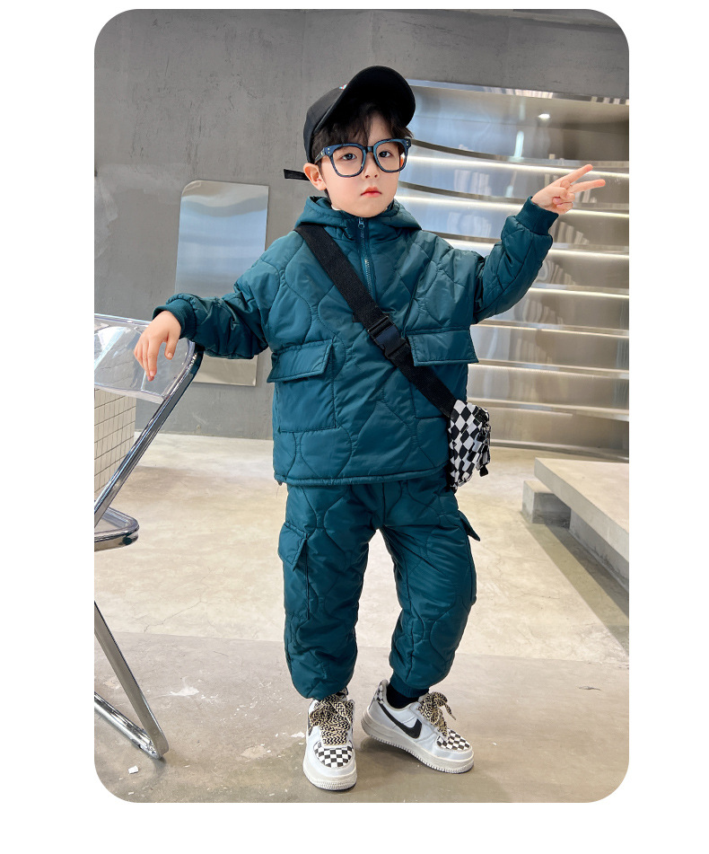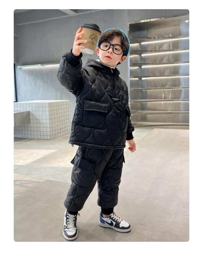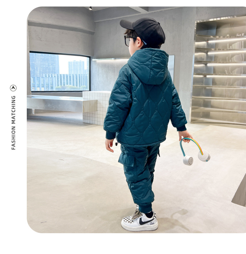 어린이 겨울 두꺼운 코튼 코트 세트 2025 새로운 패셔너블 보이즈 서양식 냉방형 올 매치 코튼 코트 세트 잘 생긴스토어 가기