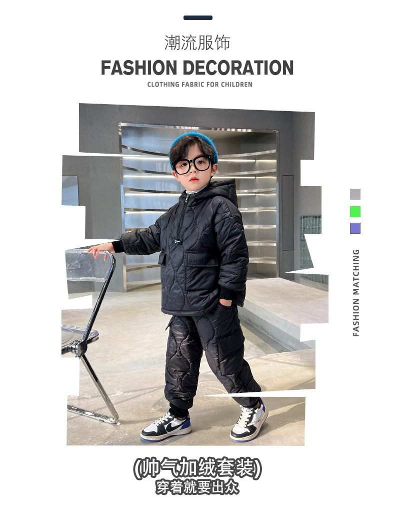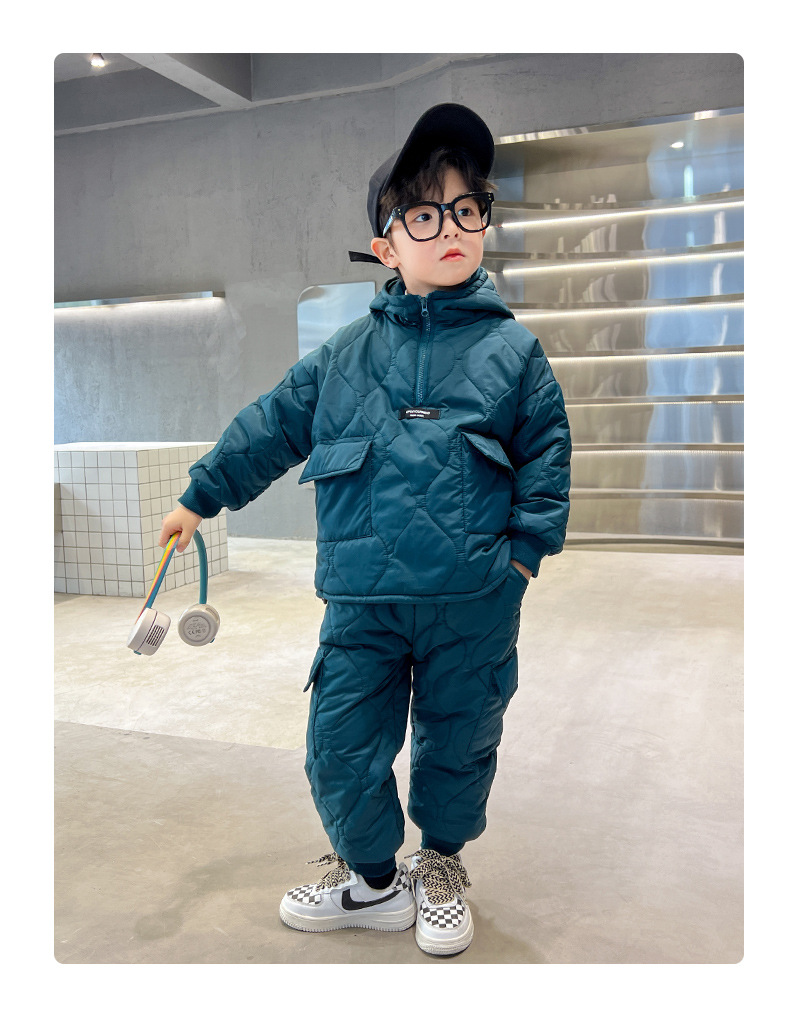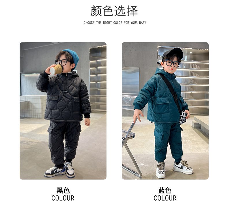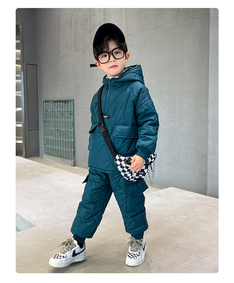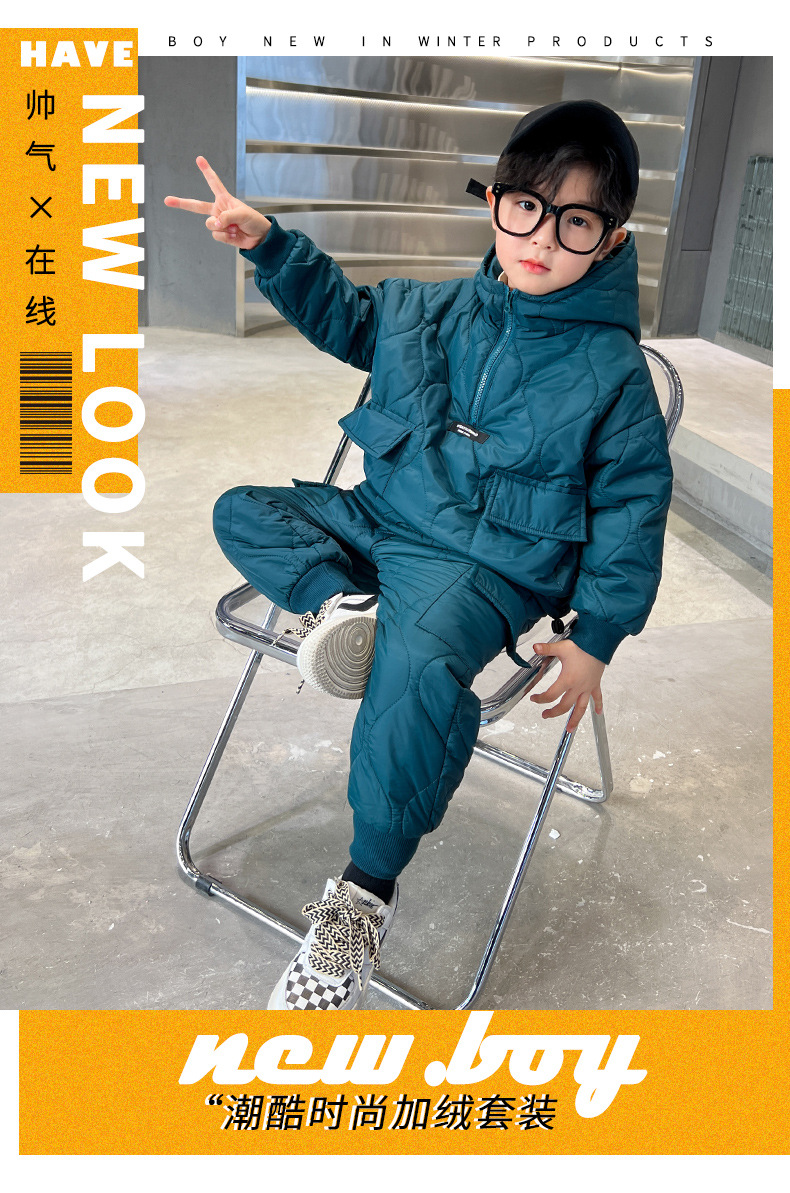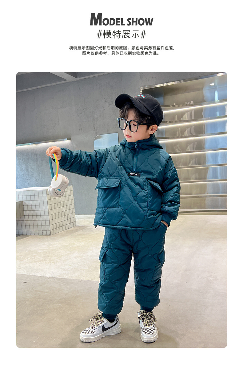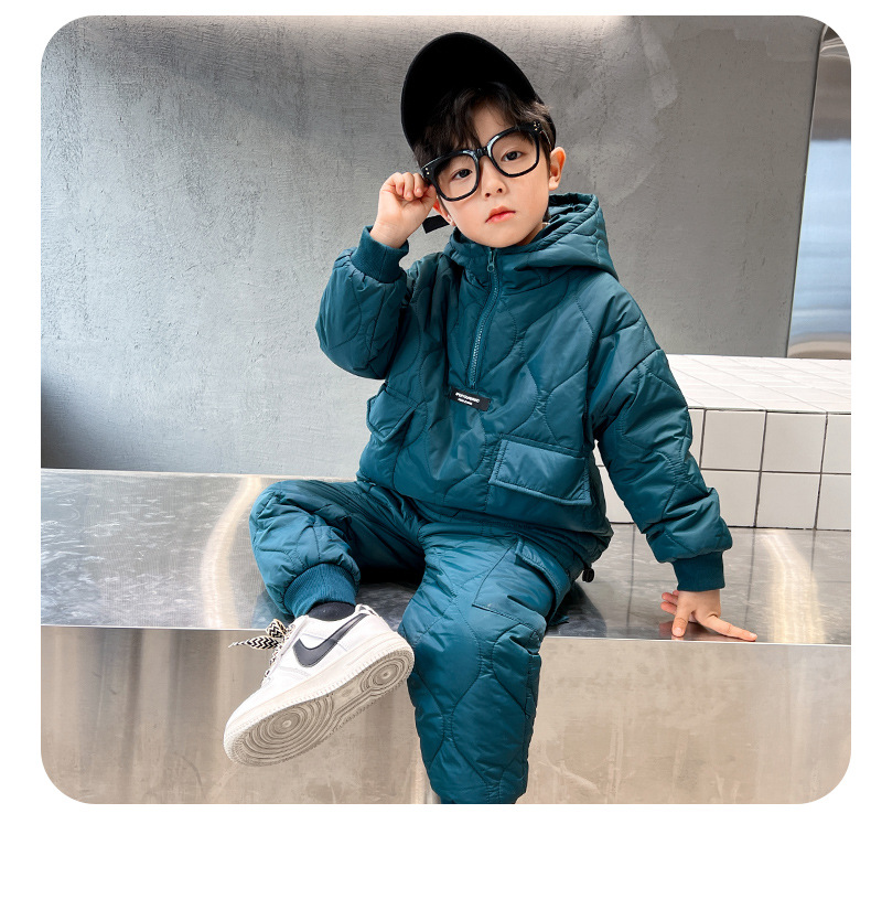 어린이 겨울 두꺼운 코튼 코트 세트 2025 새로운 패셔너블 보이즈 서양식 냉방형 올 매치 코튼 코트 세트 잘 생긴스토어 가기