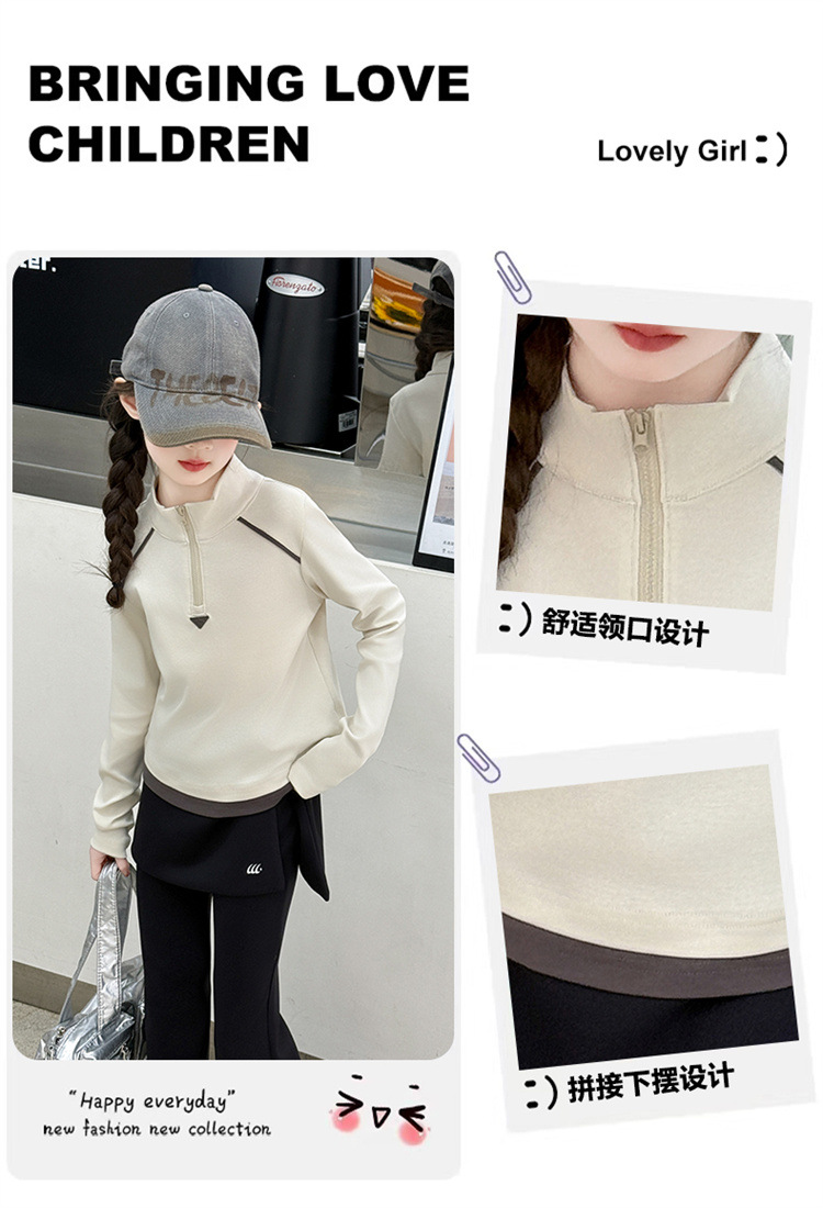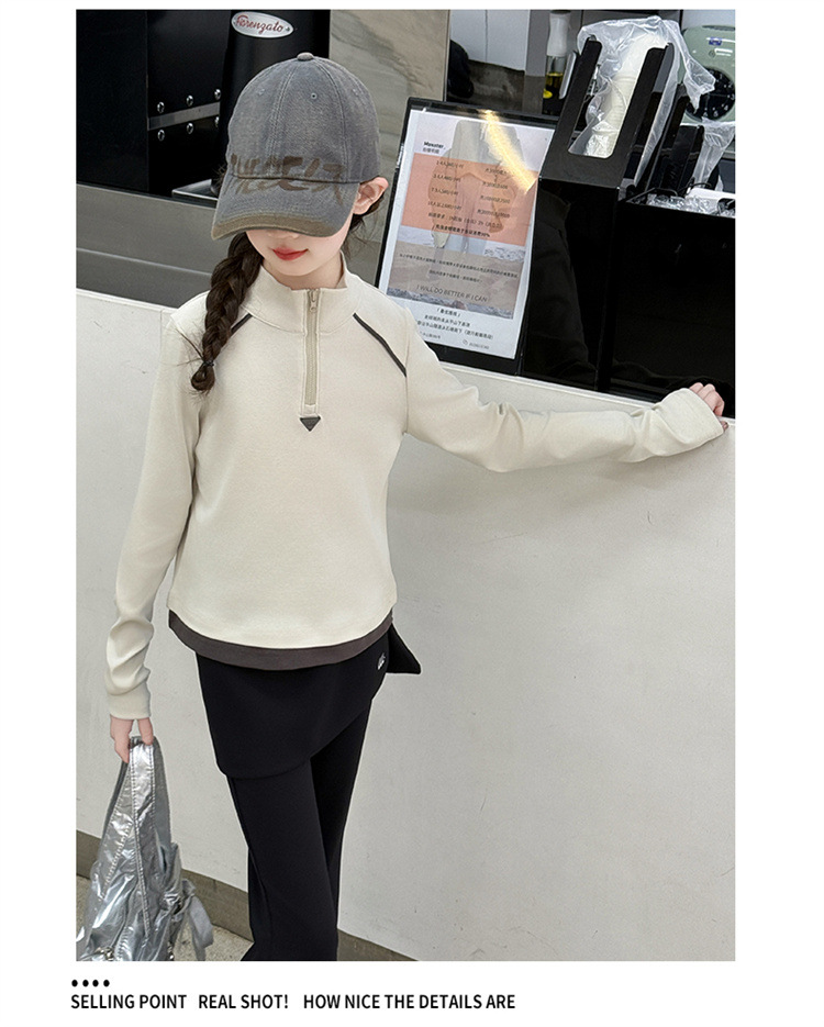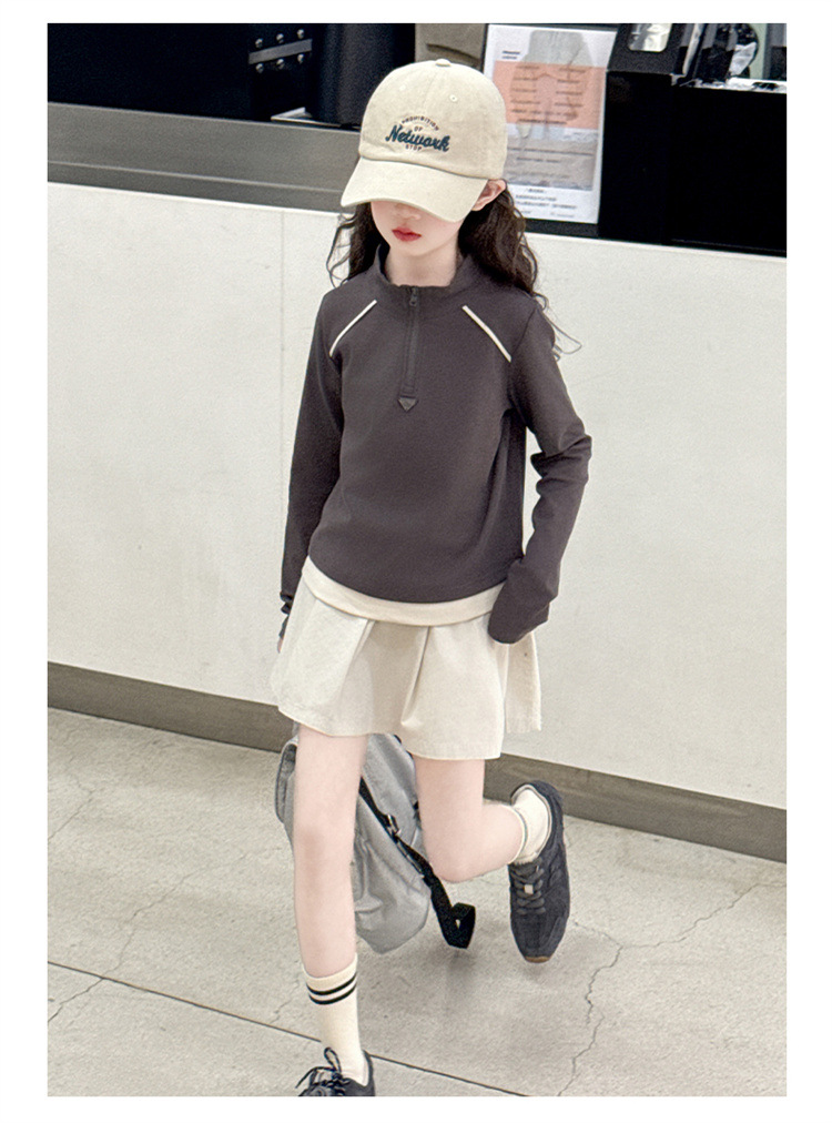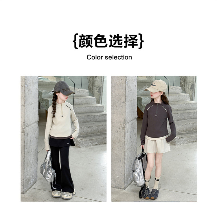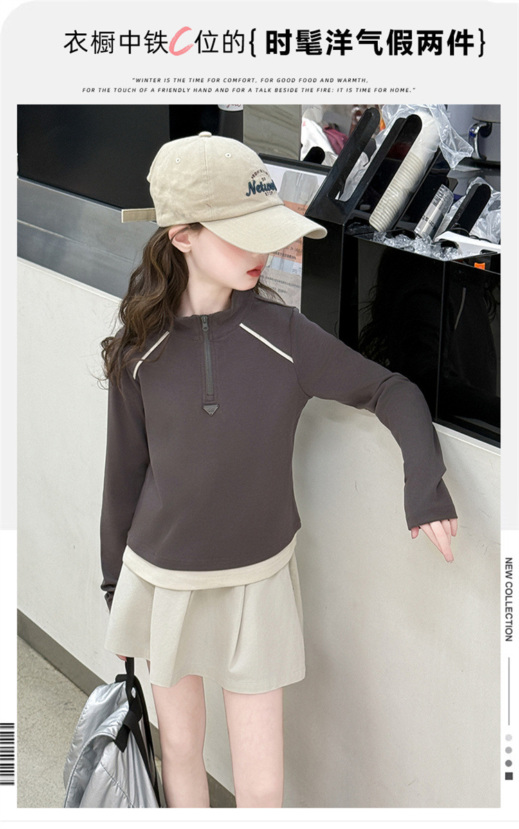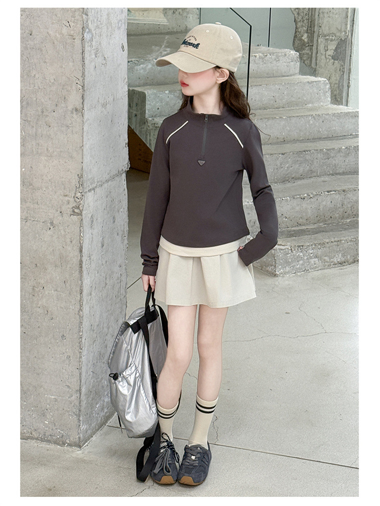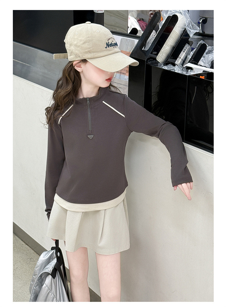 여자 반 지퍼 수직 칼라 풀오버 긴 소매 티셔츠 2025 봄 새로운 스타일 소녀 짧은 슬림 탑 베이스 레이어 셔츠