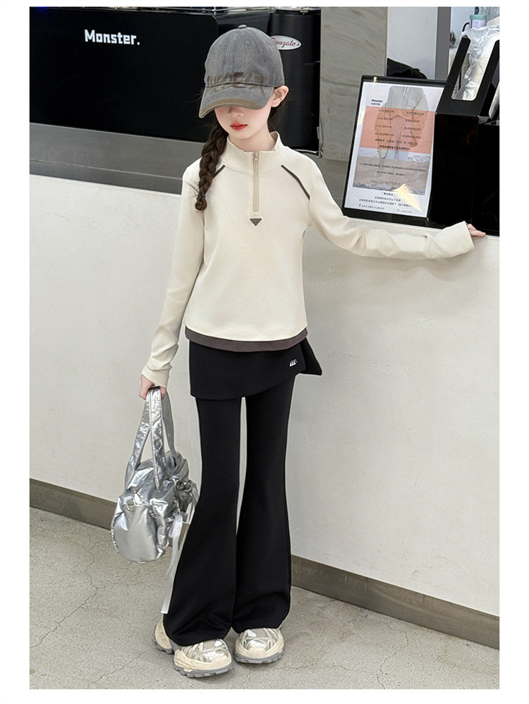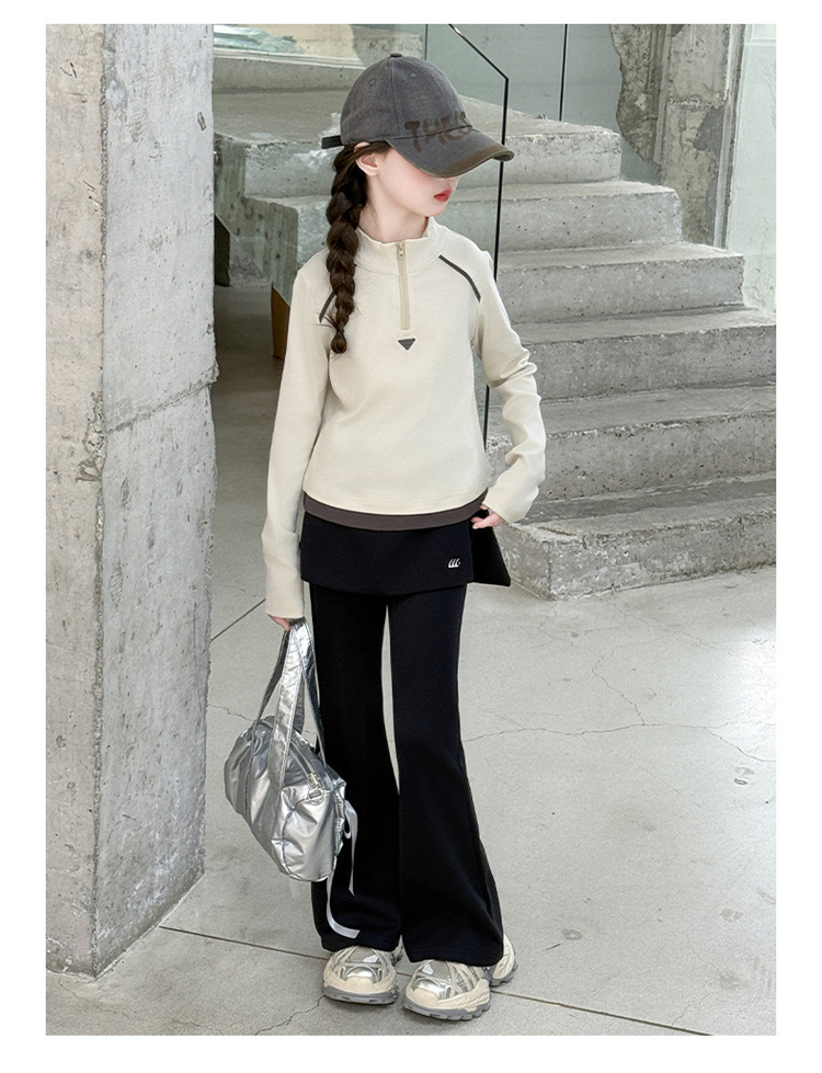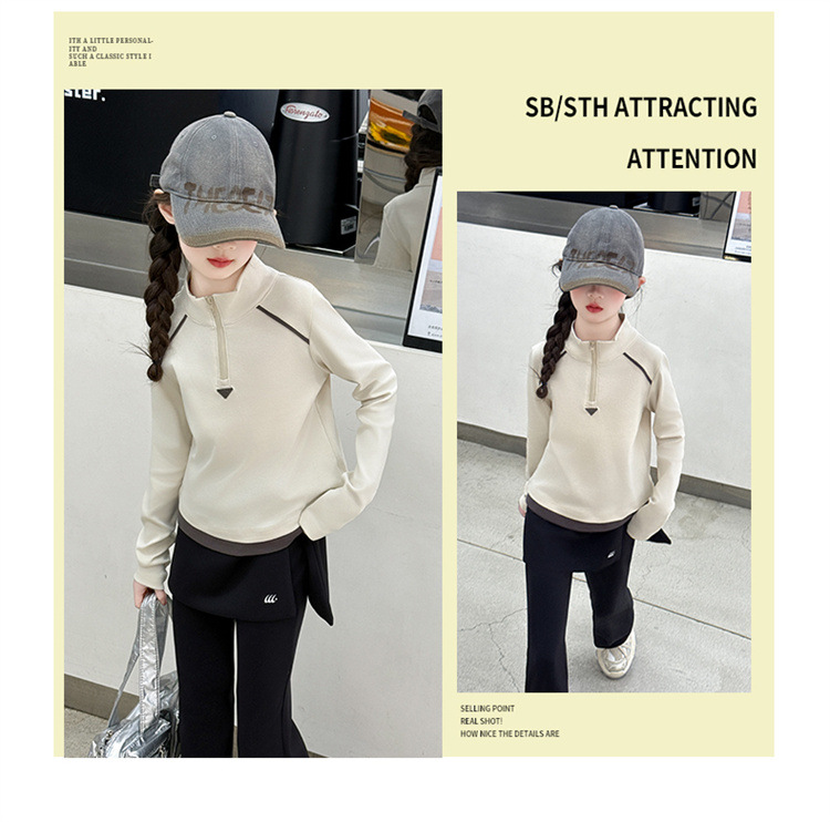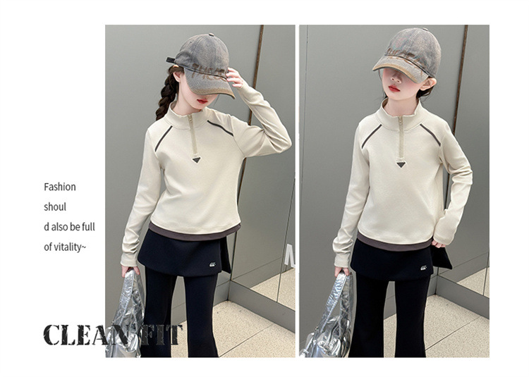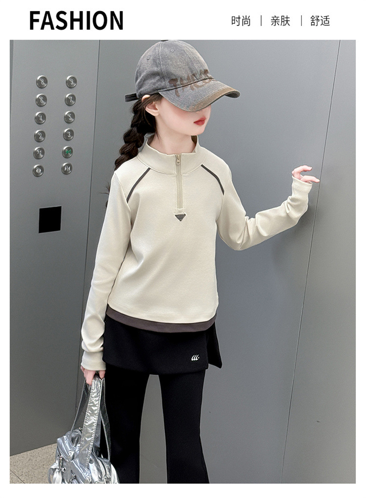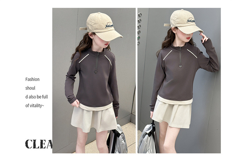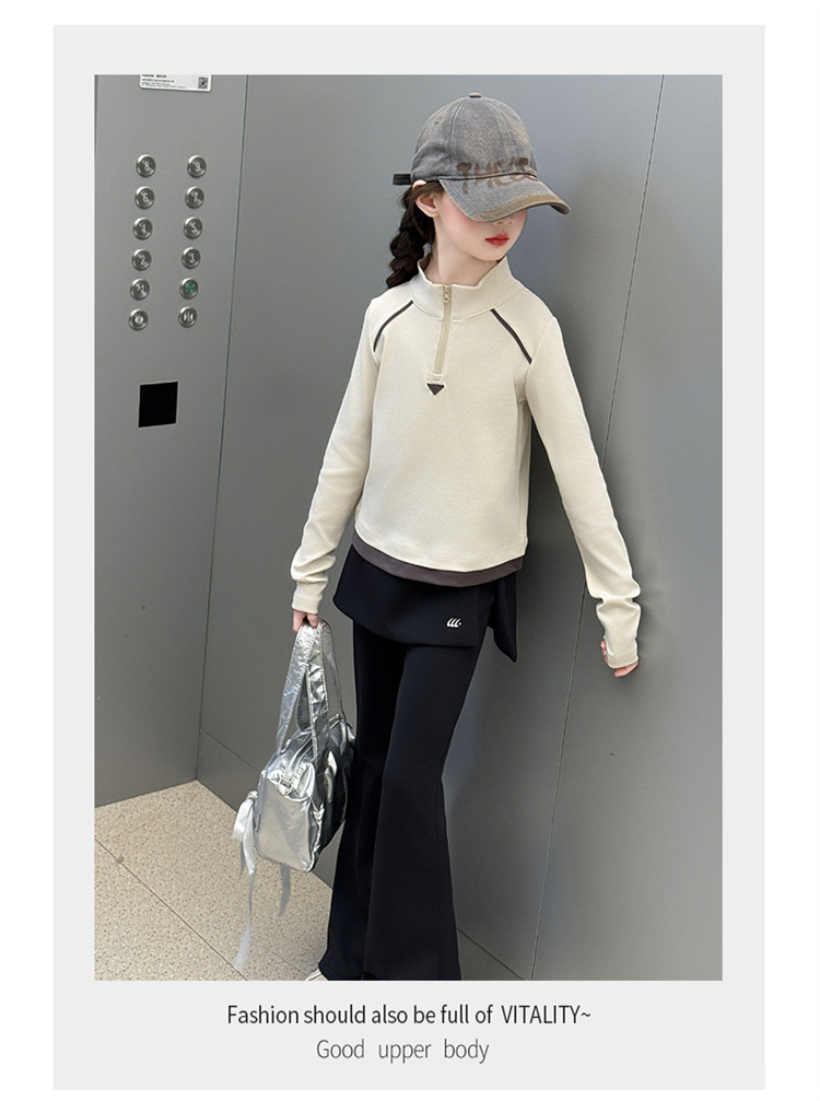 여자 반 지퍼 수직 칼라 풀오버 긴 소매 티셔츠 2025 봄 새로운 스타일 소녀 짧은 슬림 탑 베이스 레이어 셔츠