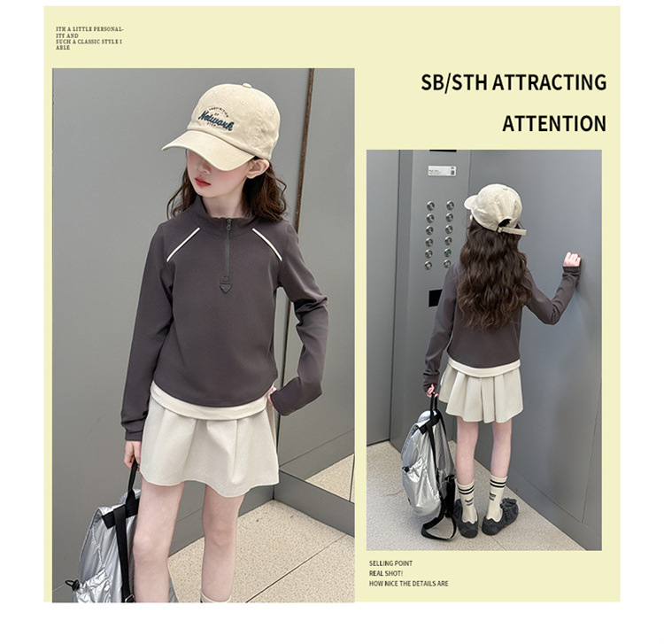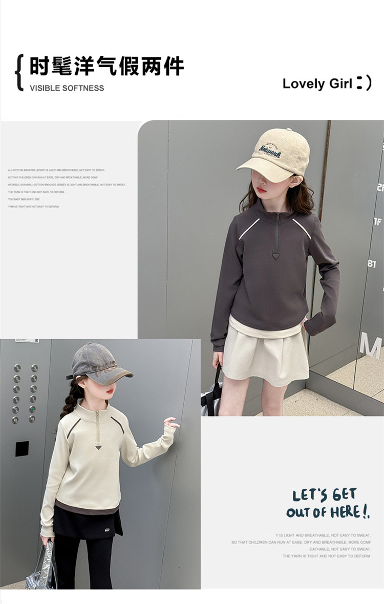 여자 반 지퍼 수직 칼라 풀오버 긴 소매 티셔츠 2025 봄 새로운 스타일 소녀 짧은 슬림 탑 베이스 레이어 셔츠스토어 가기