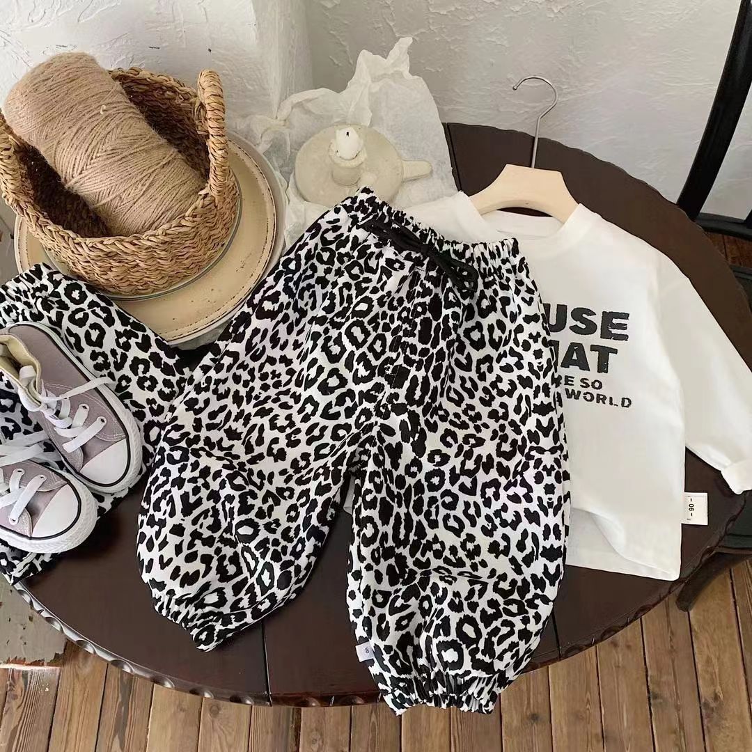 새로운 남성과 여성의 봄과 가을 어린이 서양식 한국 스타일 캐주얼 다리 다리 패션 올 매치 트렌디 한 어린이 운동복 봄과 여름 느슨한 얇은스토어 가기