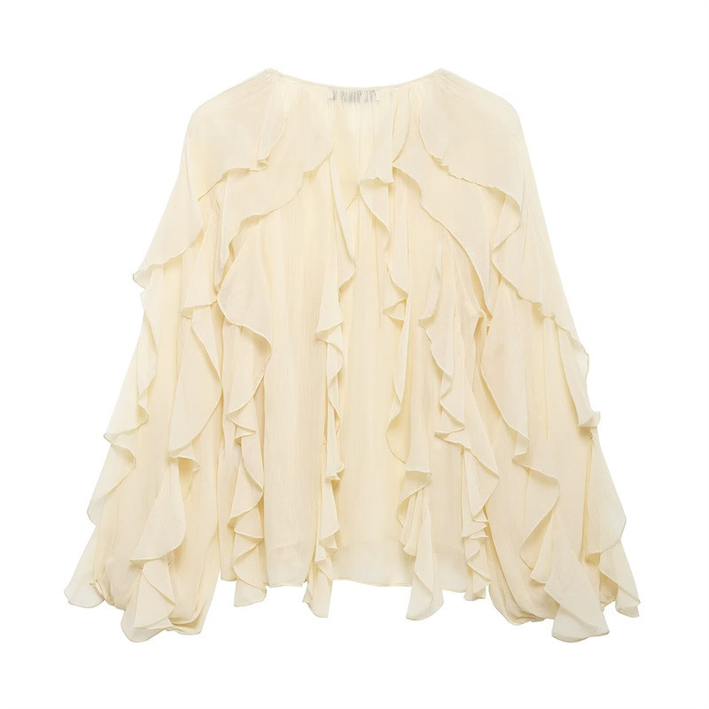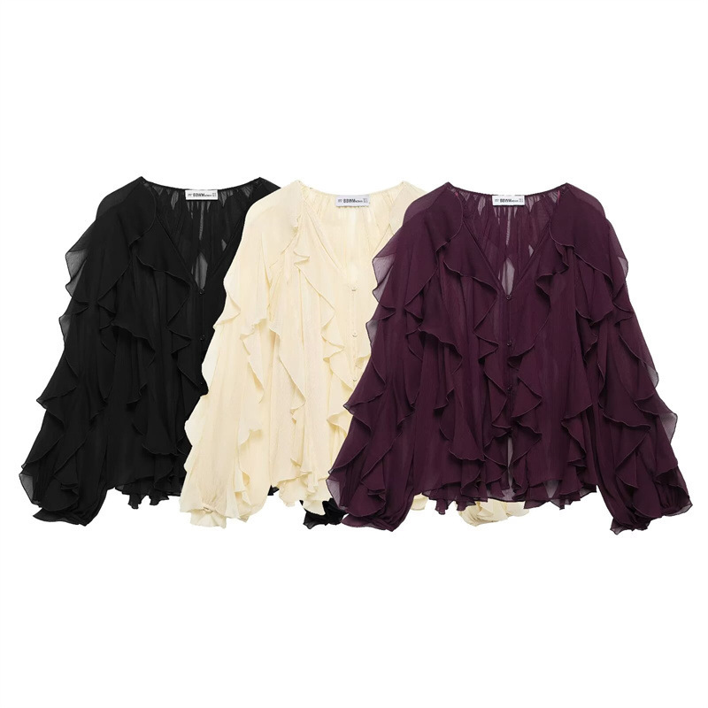 SAW AliExpress 독립 역 유럽과 미국 스타일의 여성 패션 캐주얼 긴 소매 V-Neck 라미네이트 장식 셔츠 4786063스토어 가기