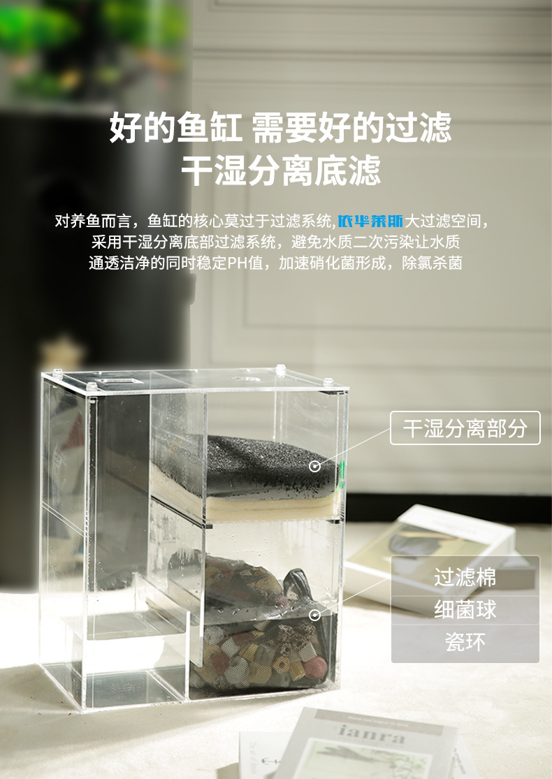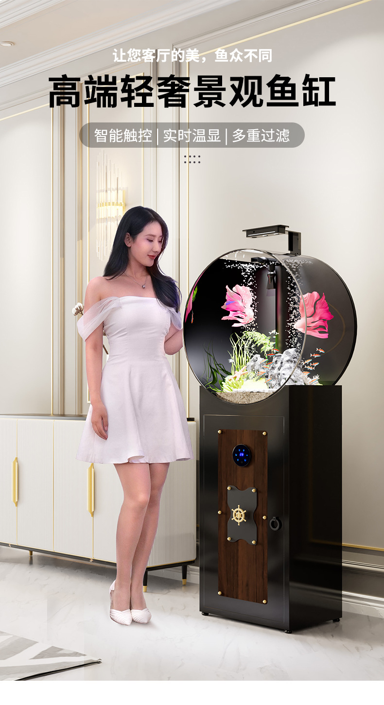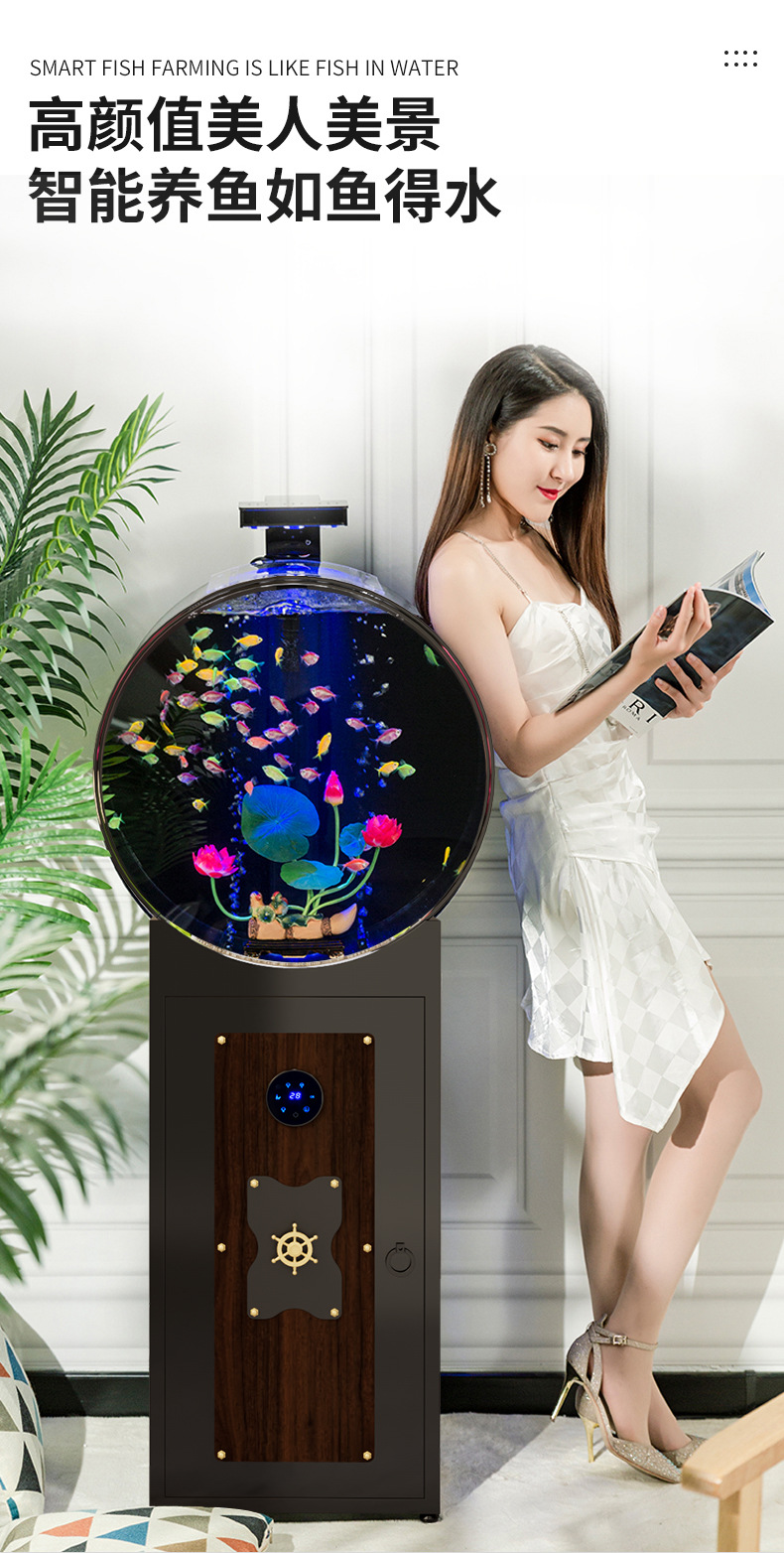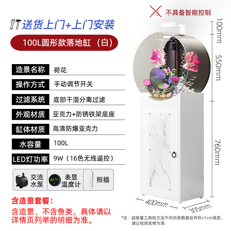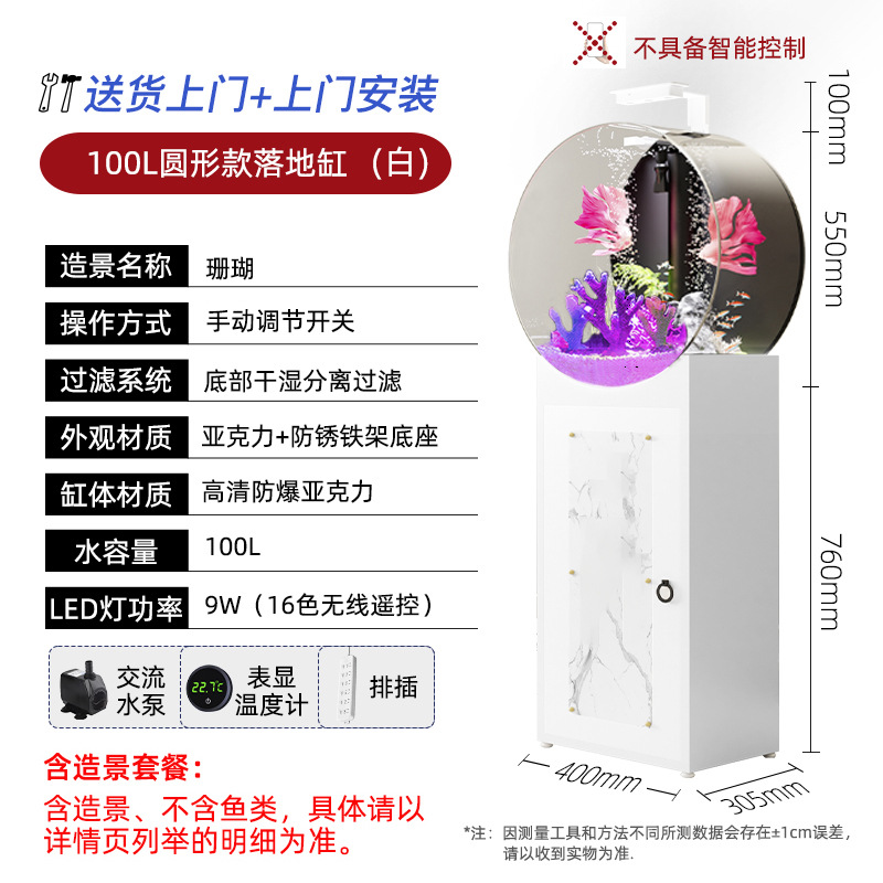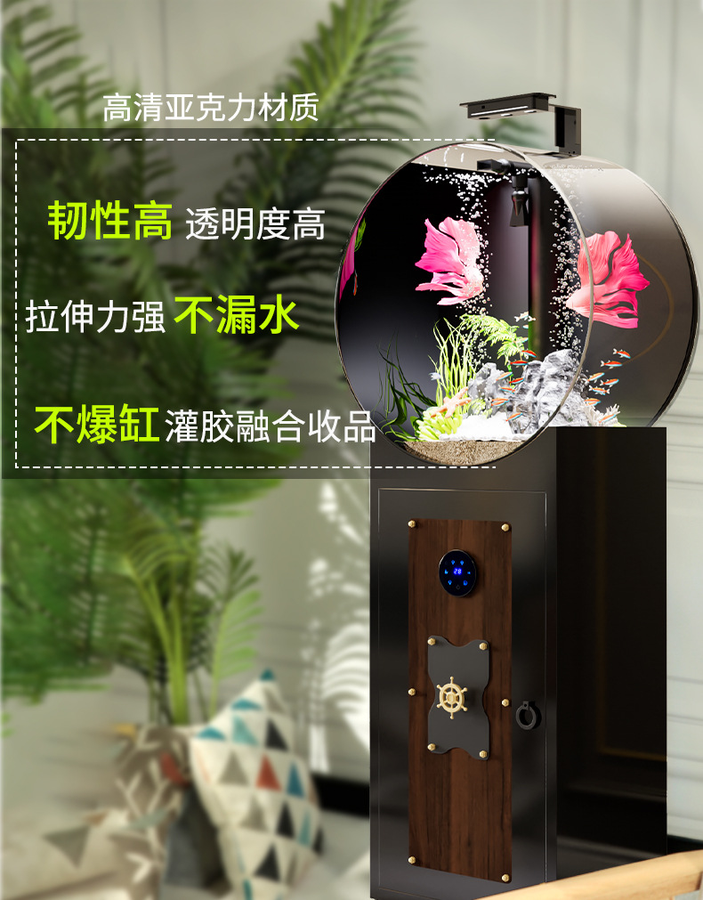 새로운 중형 생태 물없는 둥근 고화질 비 유리 바닥 필터 바닥 물고기 탱크 수족관 거실 어항스토어 가기