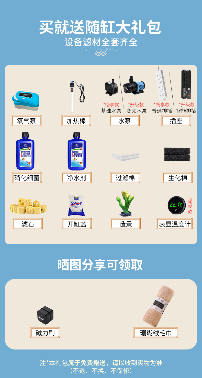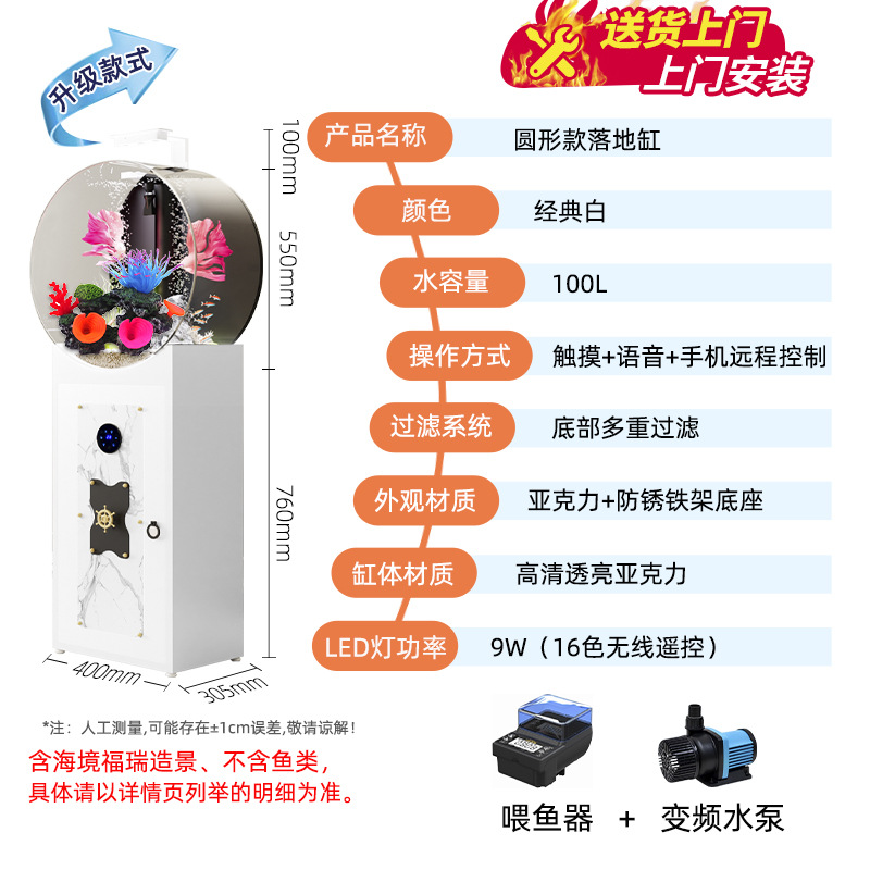 • 클래식 화이트 원형 바닥 수조 - 산호 풍경 업그레이드 버전 (피더 + 가변 주파수 워터 펌프)