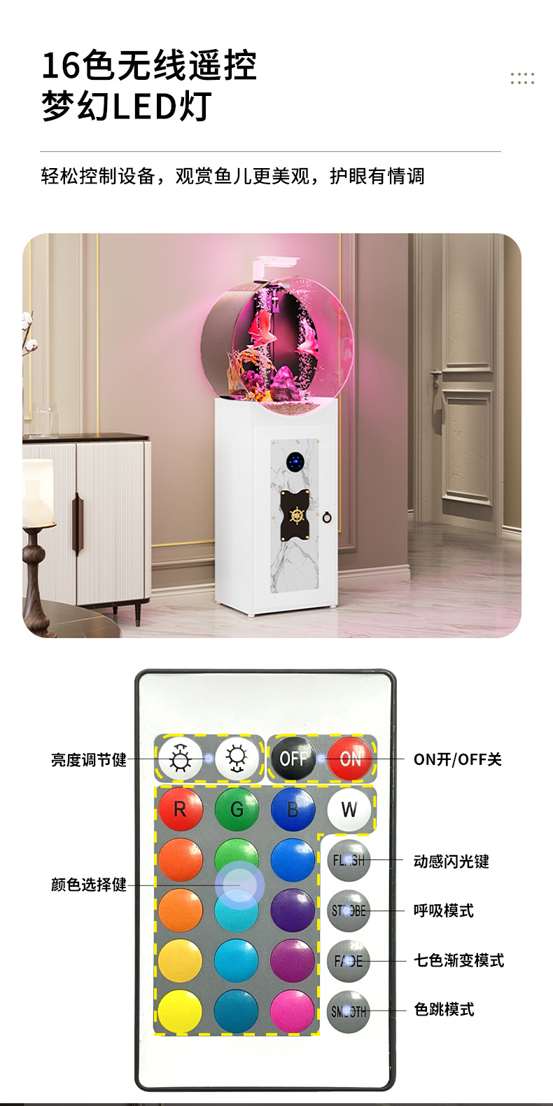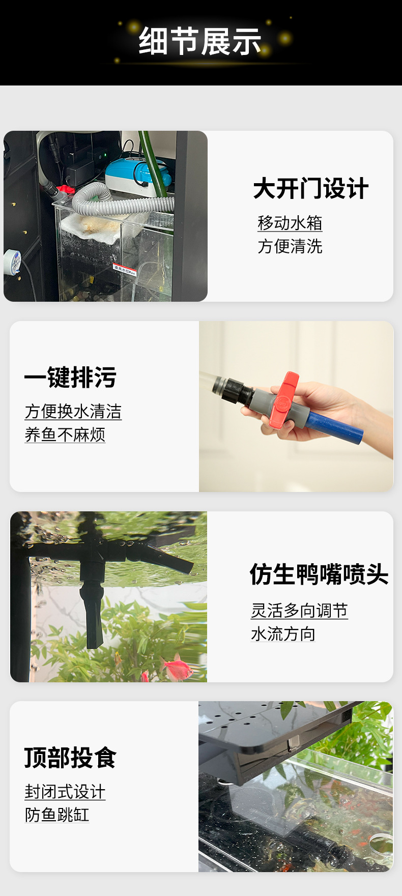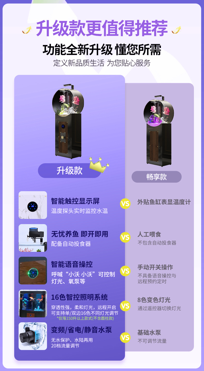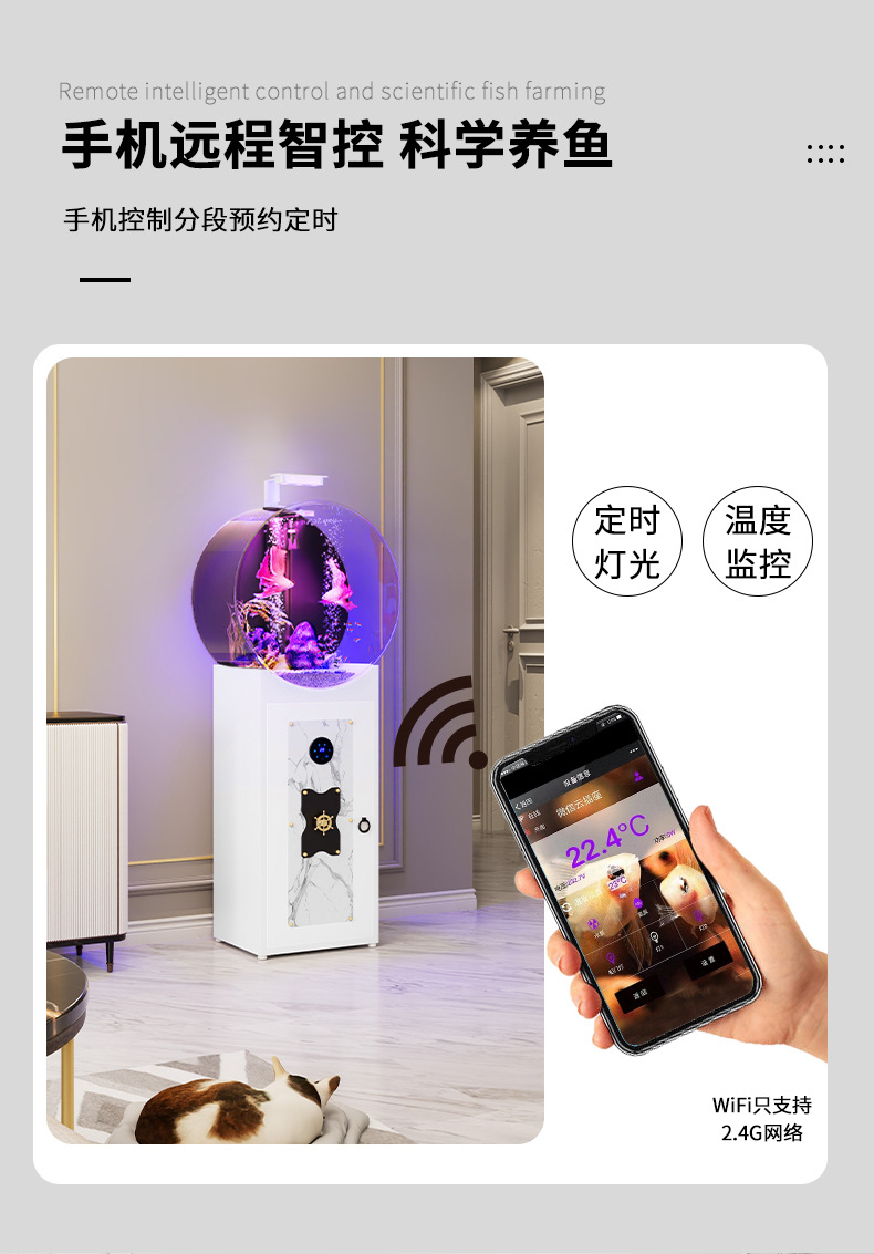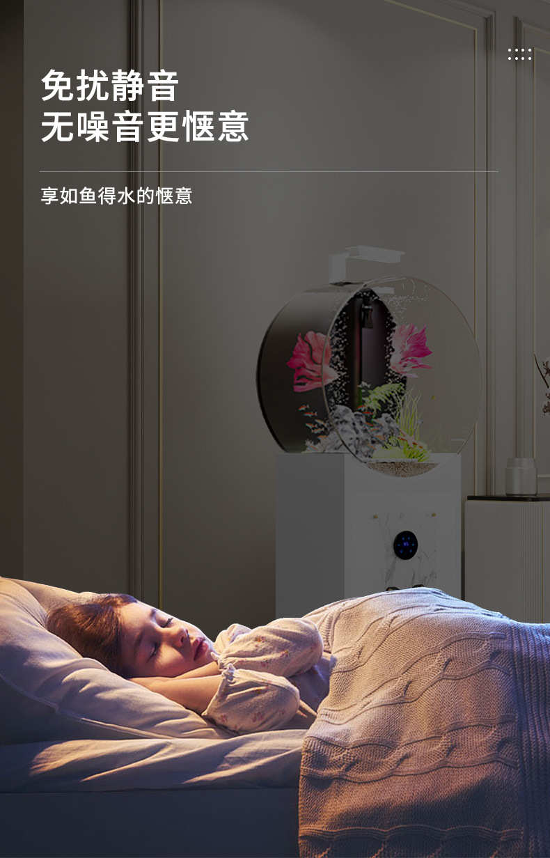 • 피아노 블랙 원형 바닥부터 천장까지 이어지는 수조 - 산호풍경 업그레이드 피더 + 가변 주파수 워터 펌프
