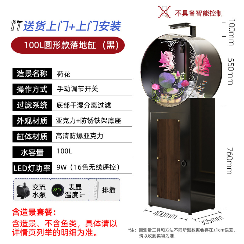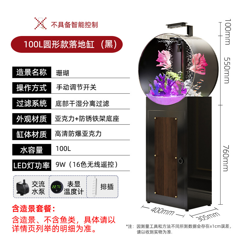새로운 중형 생태 물없는 둥근 고화질 비 유리 바닥 필터 바닥 물고기 탱크 수족관 거실 어항