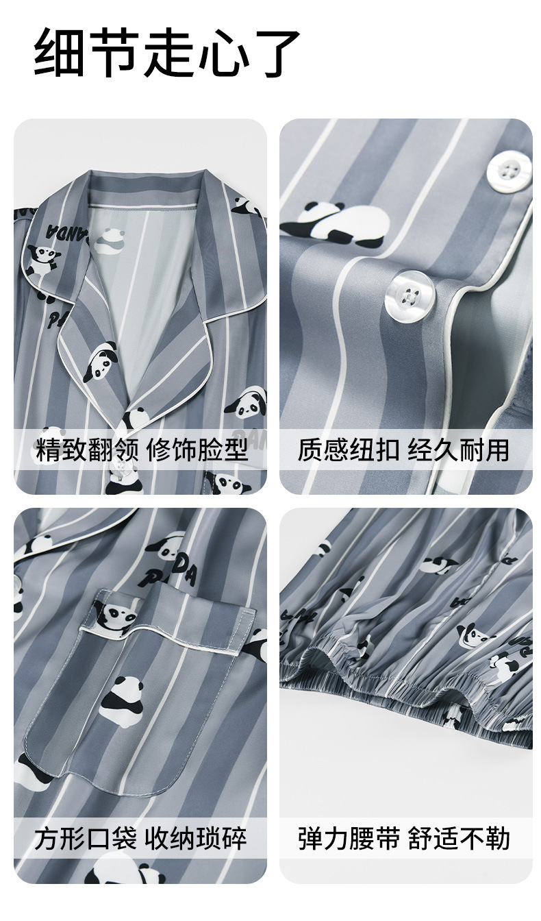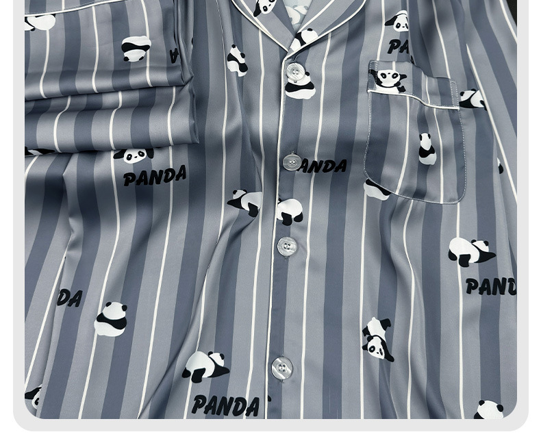 [귀여운~ 남자친구에게 선물] 남성용 신상 팬더 블루 아이스 실크 잠옷 여름 시원하고 실키한 라펠 남성용 홈웨어스토어 가기