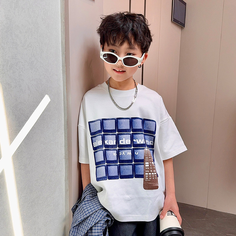 [봄/여름 2025 신제품] 소년 키보드 반팔 티셔츠 어린이 중 · 대형 어린이 면 짧은 T-대형 에디션 청소년 반소매