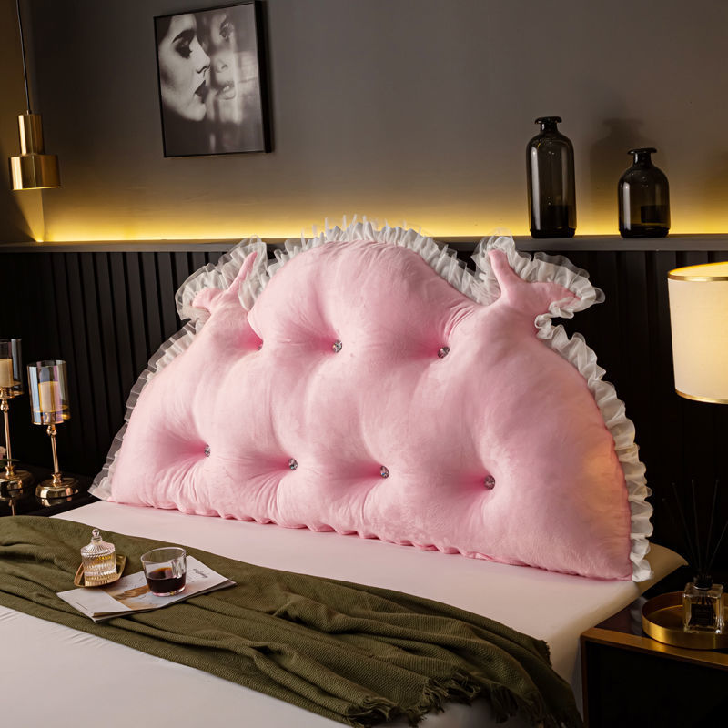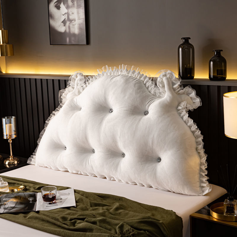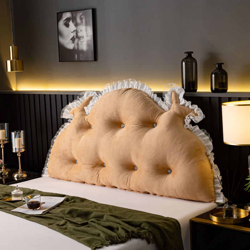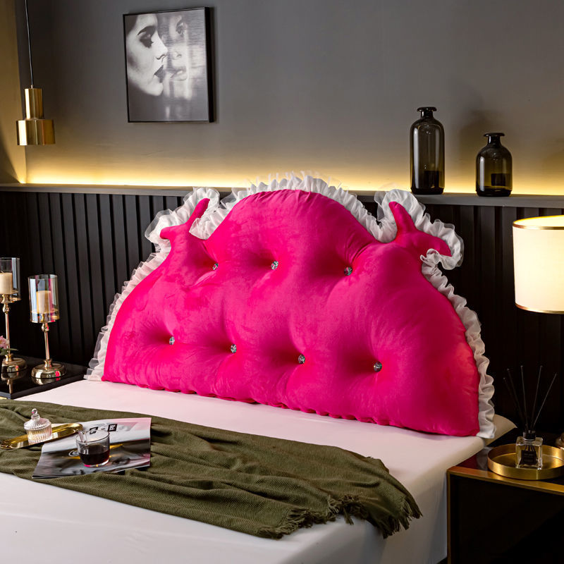 침대 옆 쿠션 귀여운 공주 등받이 크리스탈 벨벳 베개 더블 등받이 타타미 침대 사이드 소프트 백 이동식 및 세척 가능