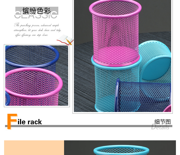我厂生产各种铁网类办公学习用品主要生产笔筒、组合文具、文件栏、文件盘、文件架、名片架、书信格、废纸篓、便签盒等时尚环保结实耐用产品,在品质和价格上有绝对优势,真诚希望和您建立合作关系,欢迎来电咨询洽谈!
