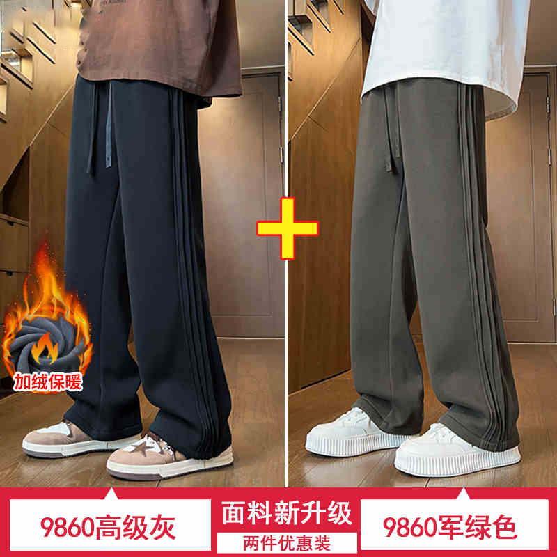 NASA 아메리칸 스타일 스웨트 팬츠 남자의 가을과 겨울 2024 느슨한 스트레이트 기모 십대 Machete 바지 넓은 다리 캐주얼 바지스토어 가기