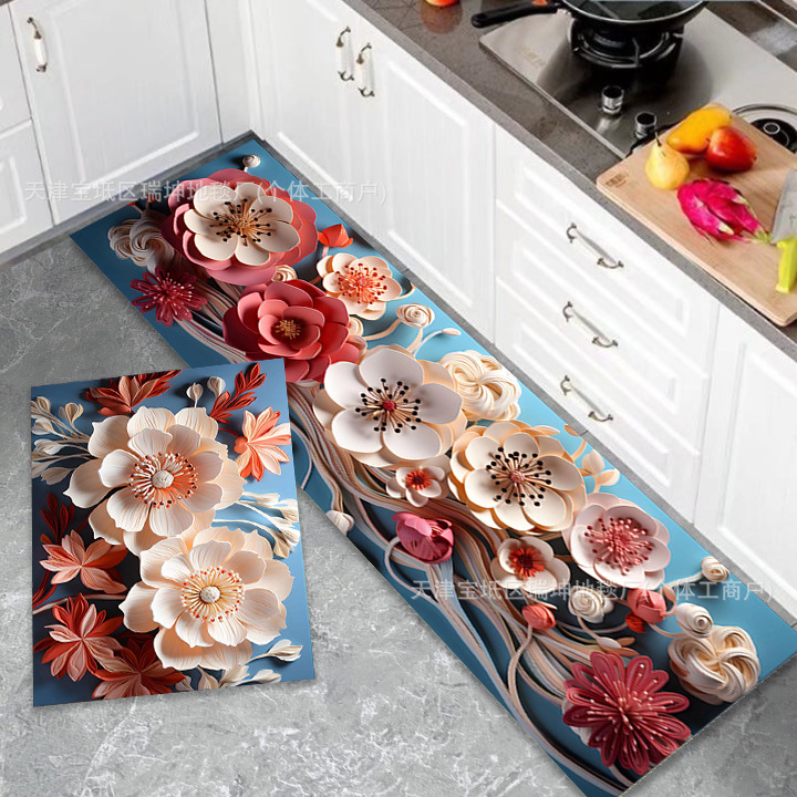 국경 간 꽃 규조류 진흙 투피스 주방 세트 가정용 미끄럼 방지 욕실 도어 매트 공장 세대 도매 배수 매트