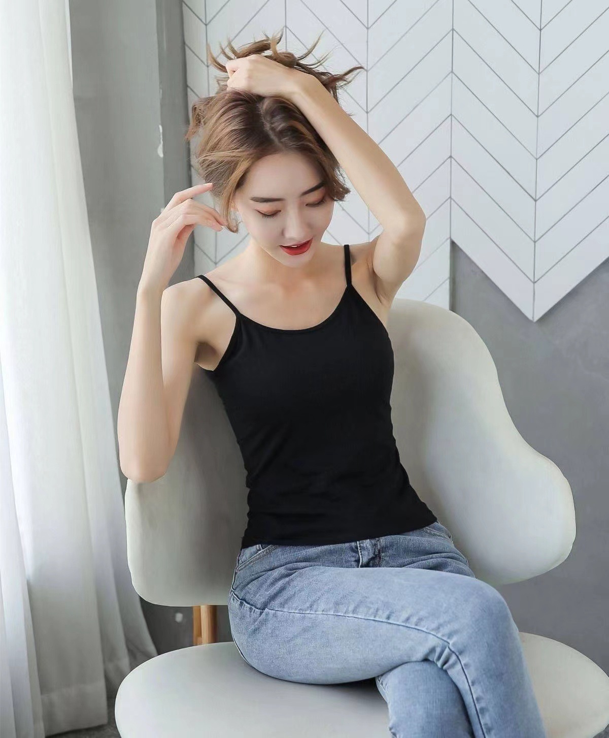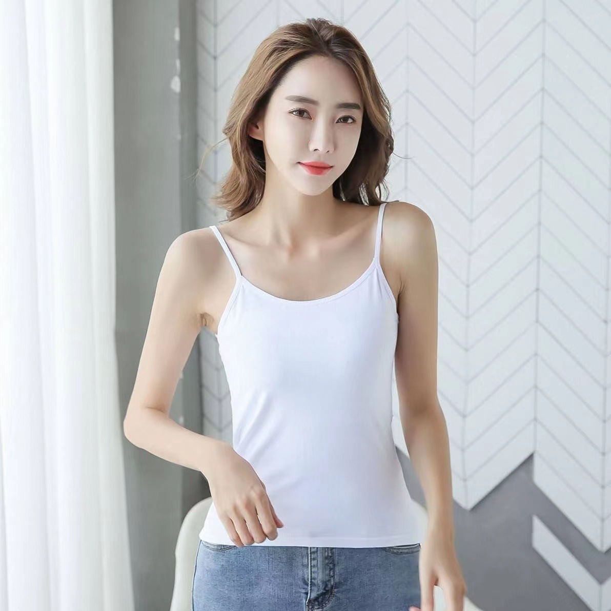 높은 스트레치 카미 솔 여성용 레이스 슬림 핏 슬림 핏 아우터 착용 섹시한 내부 눈부심 방지 짧은 코튼 탑스토어 가기