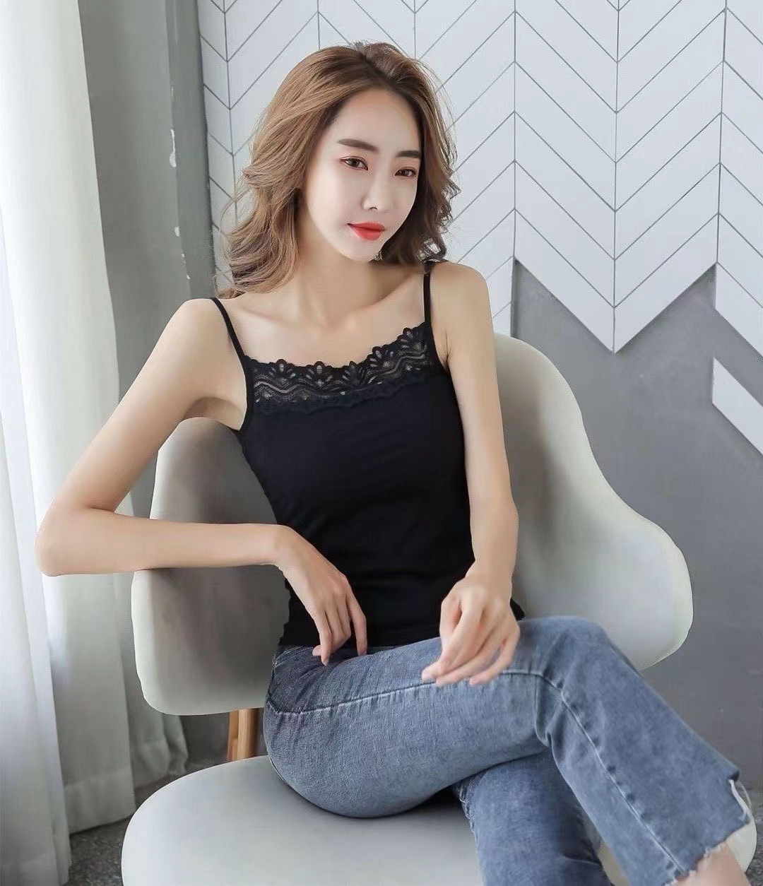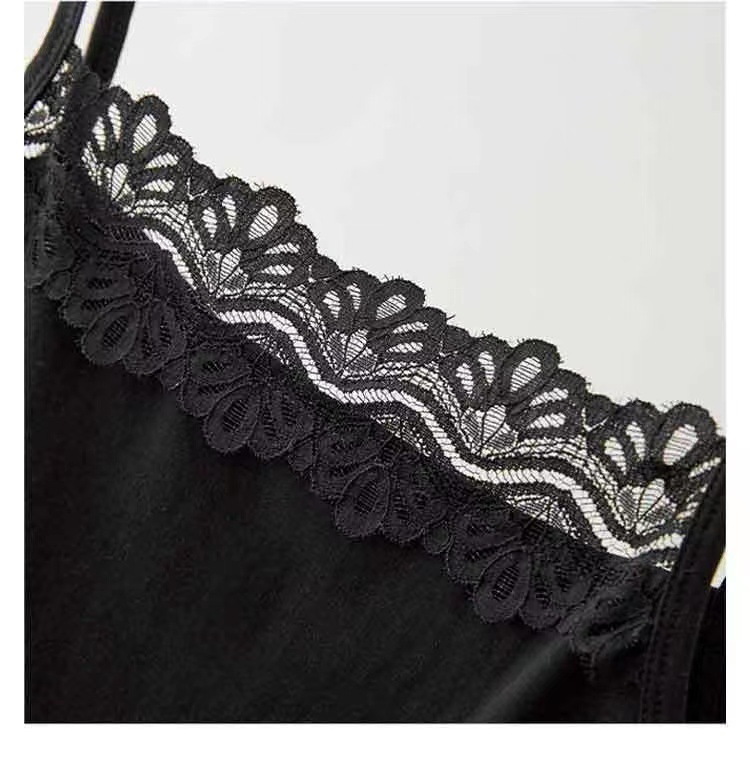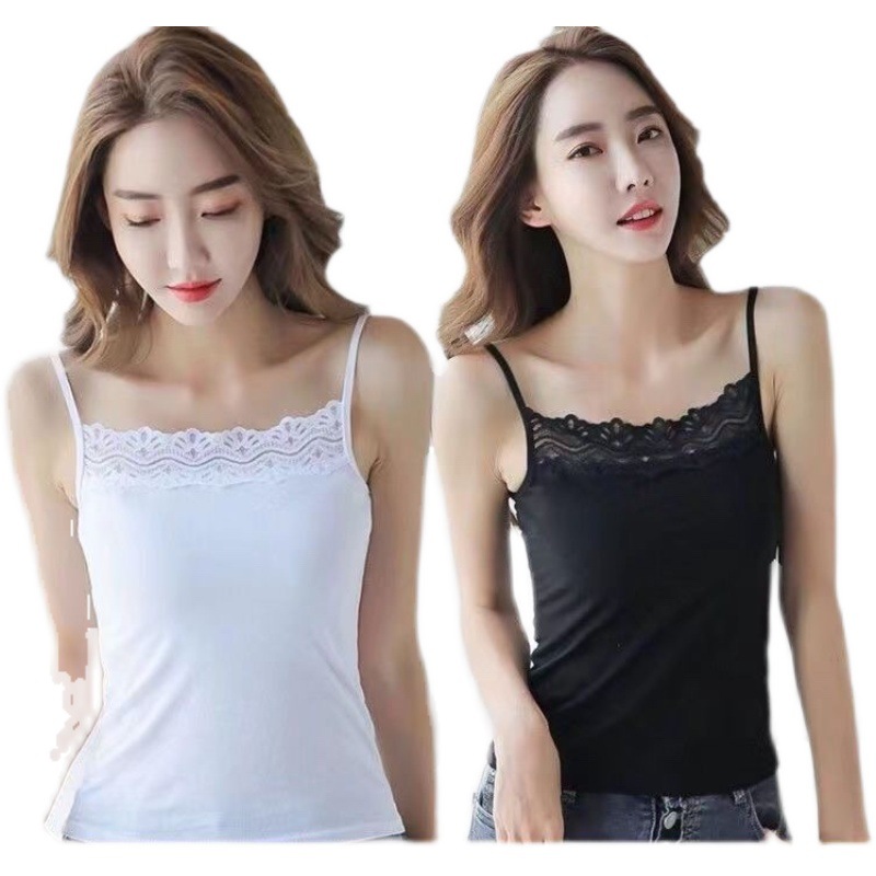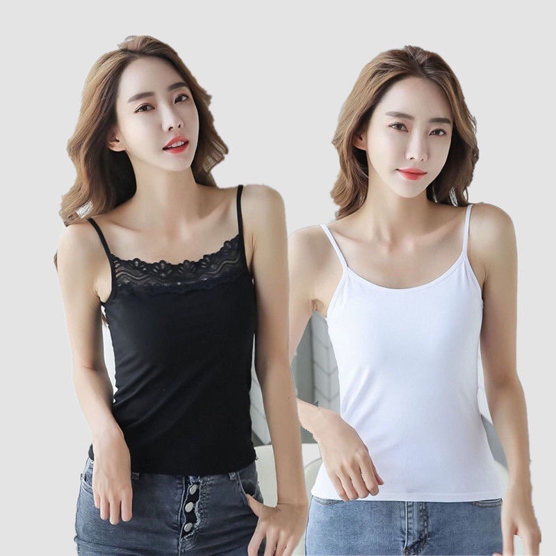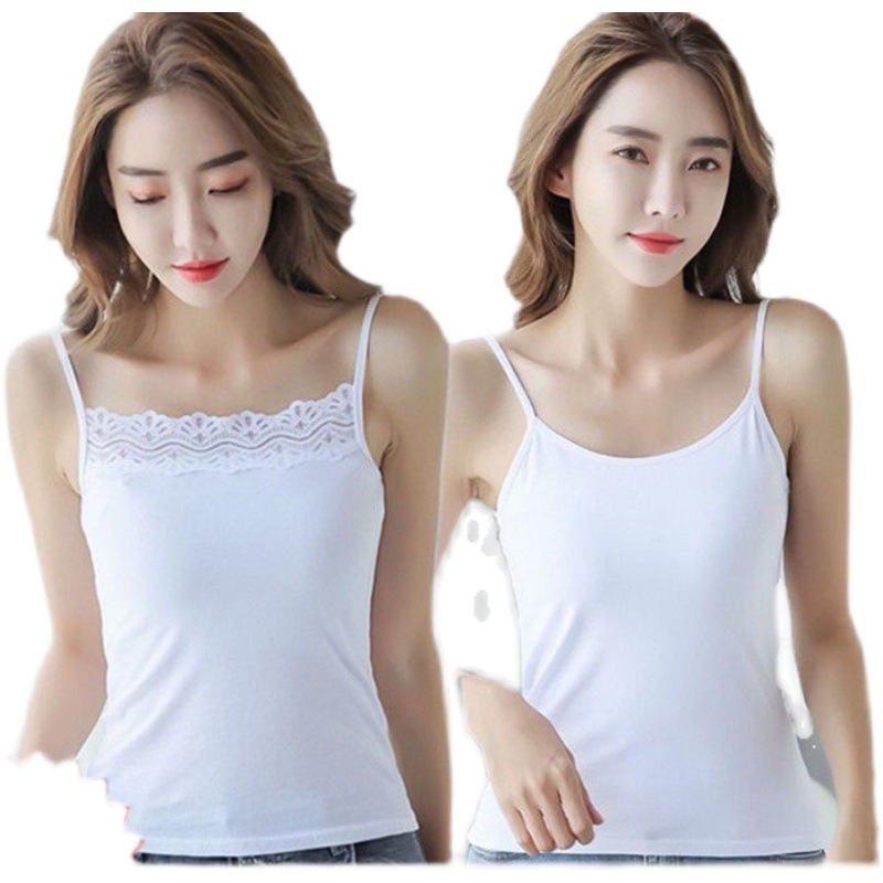 높은 스트레치 카미 솔 여성용 레이스 슬림 핏 슬림 핏 아우터 착용 섹시한 내부 눈부심 방지 짧은 코튼 탑