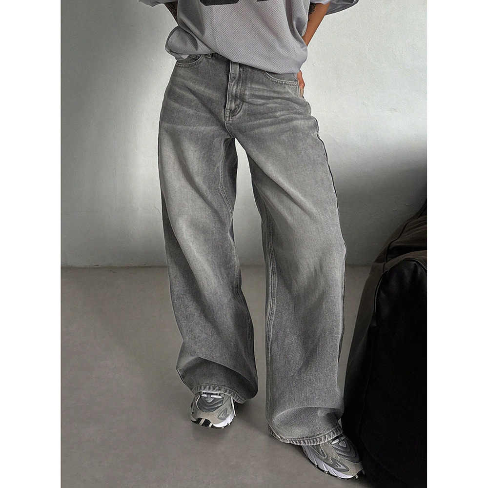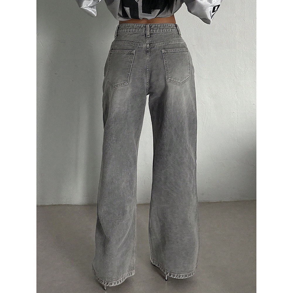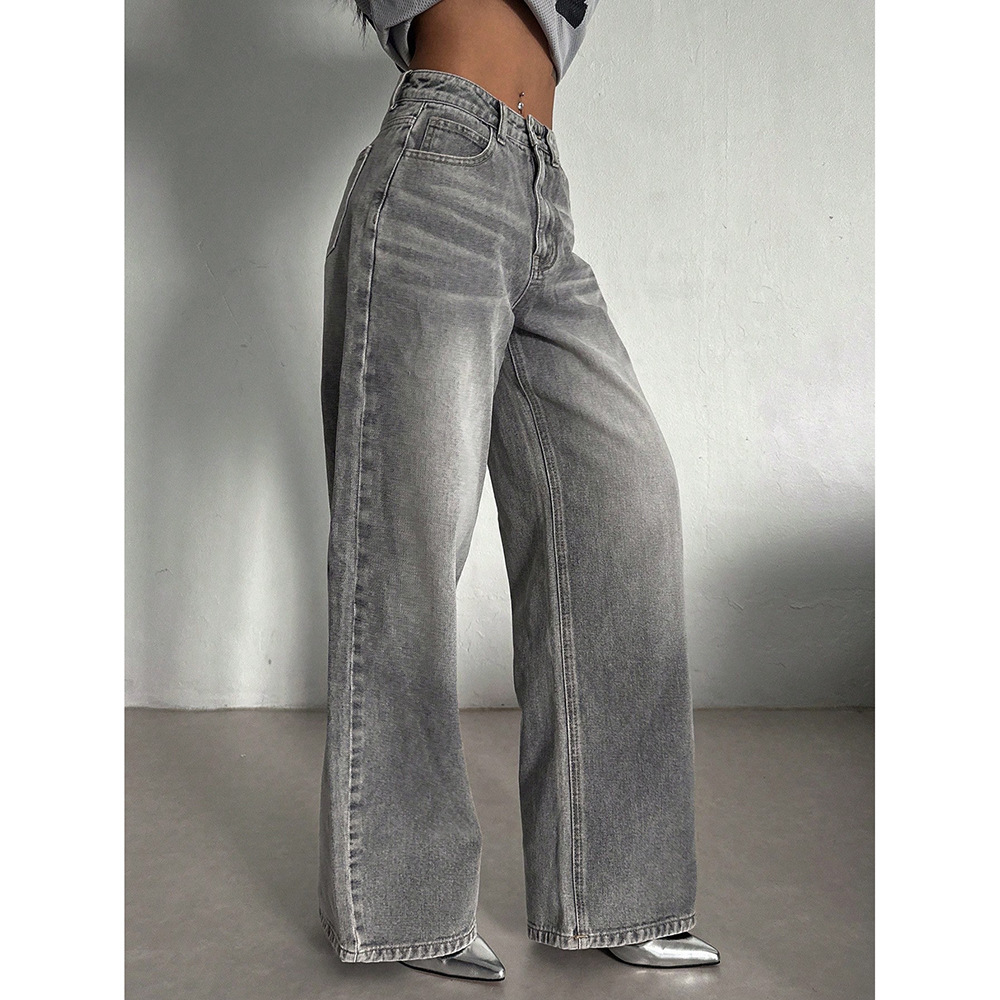 2025 봄과 가을 새로운 미국 스타일 복고풍 청바지 여성의 높은 허리 넓은 다리 느슨한 스트레이트 긴 유행 바지
