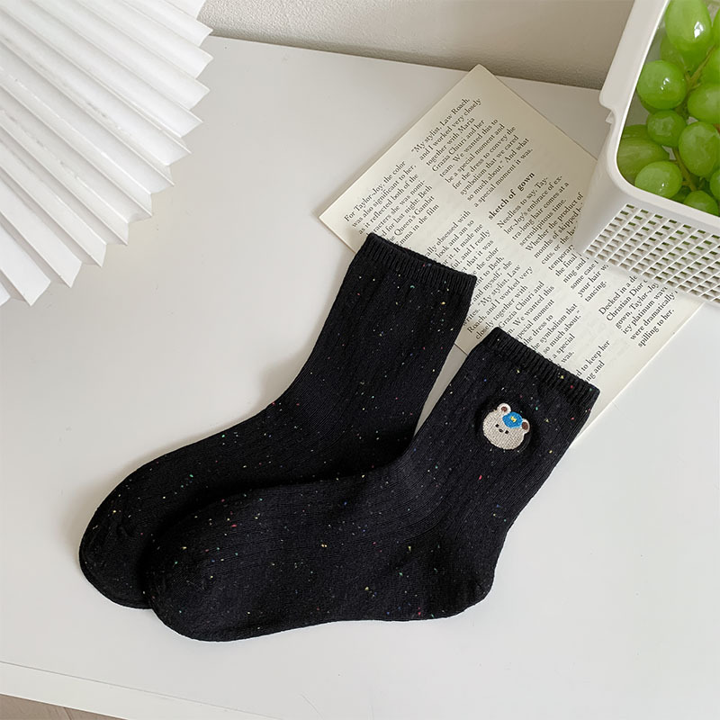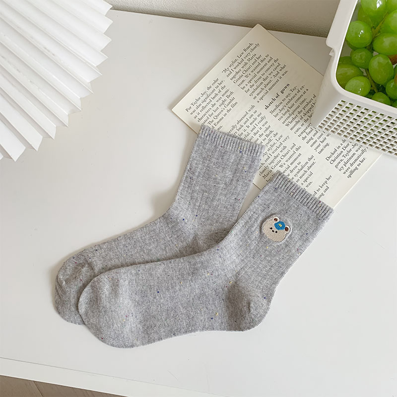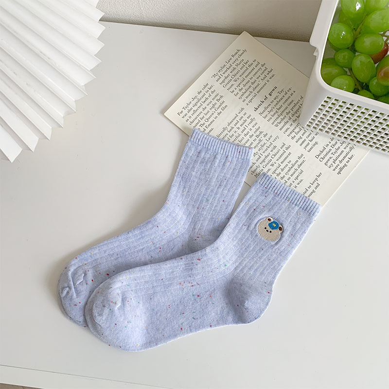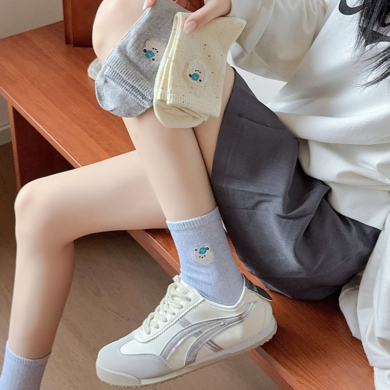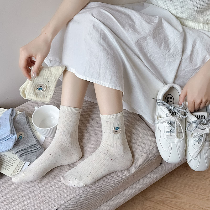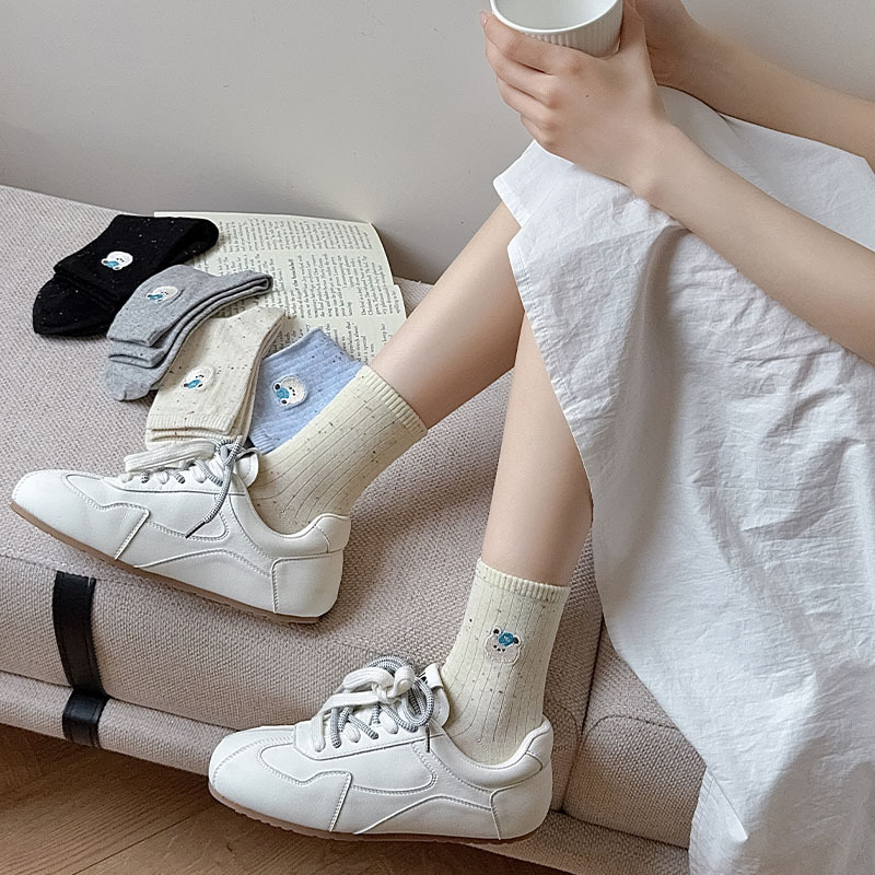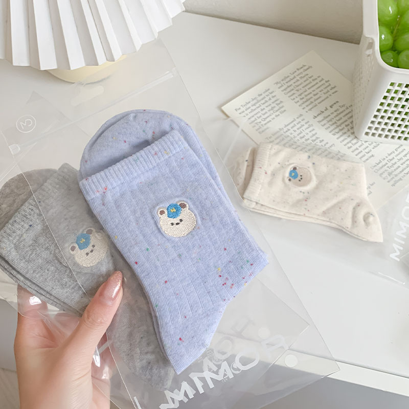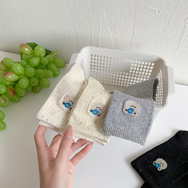 한국식 스위트 포인트 원사 양말 여자 봄 여름 올 매치 일본식 소녀 귀여운 곰 자수 학생 면 양말