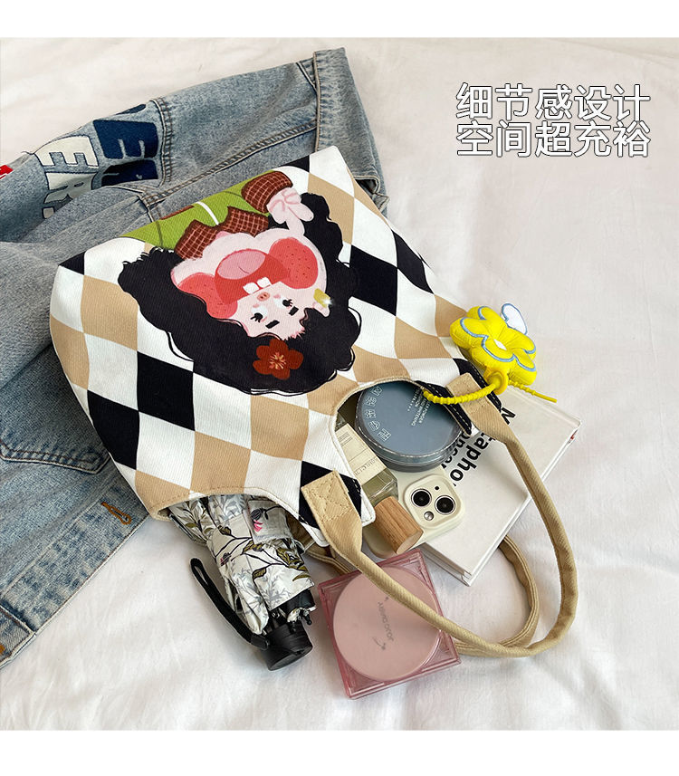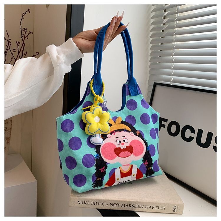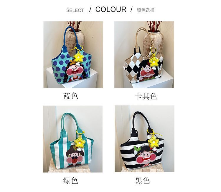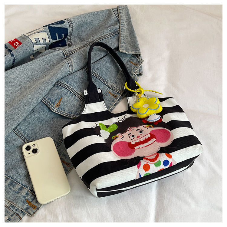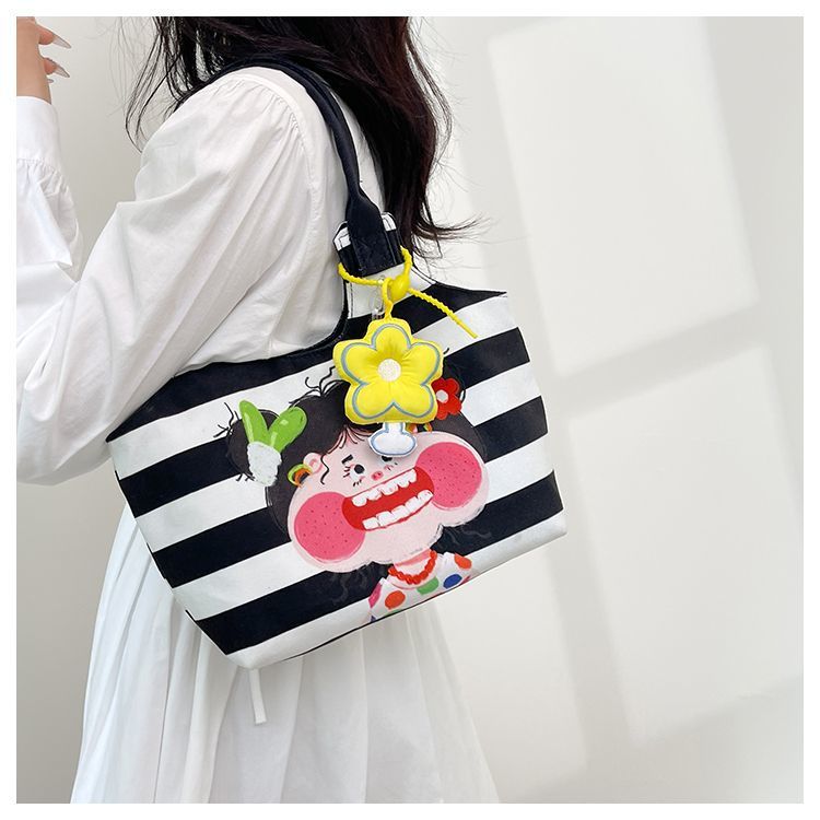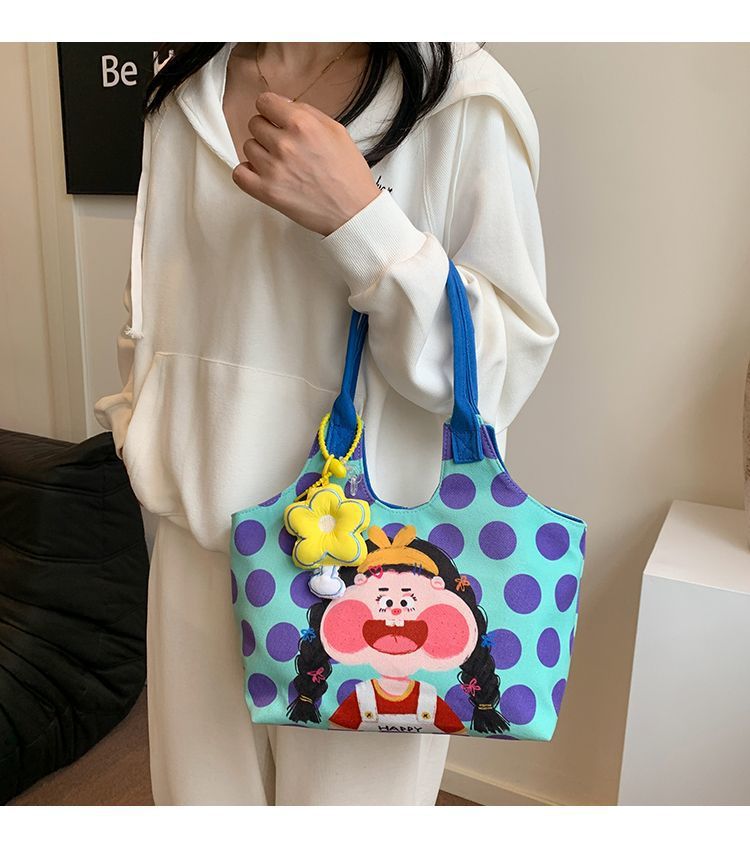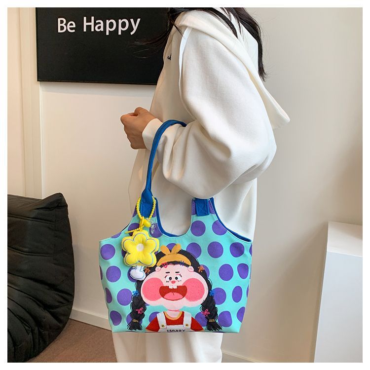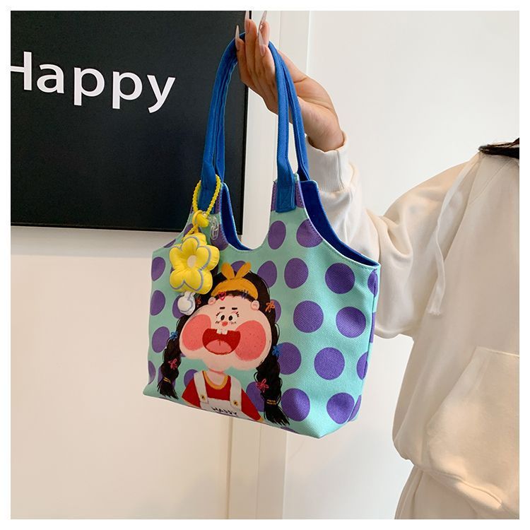 어깨 가방 낙서 만화 새로운 그림 귀여운 캔버스 가방 재미 2024 버킷 핸드백스토어 가기