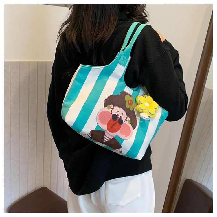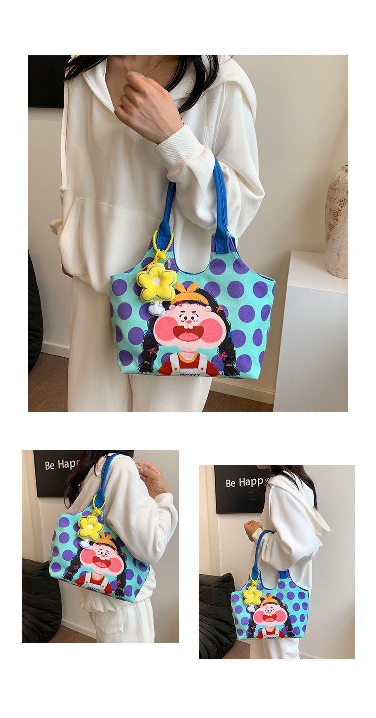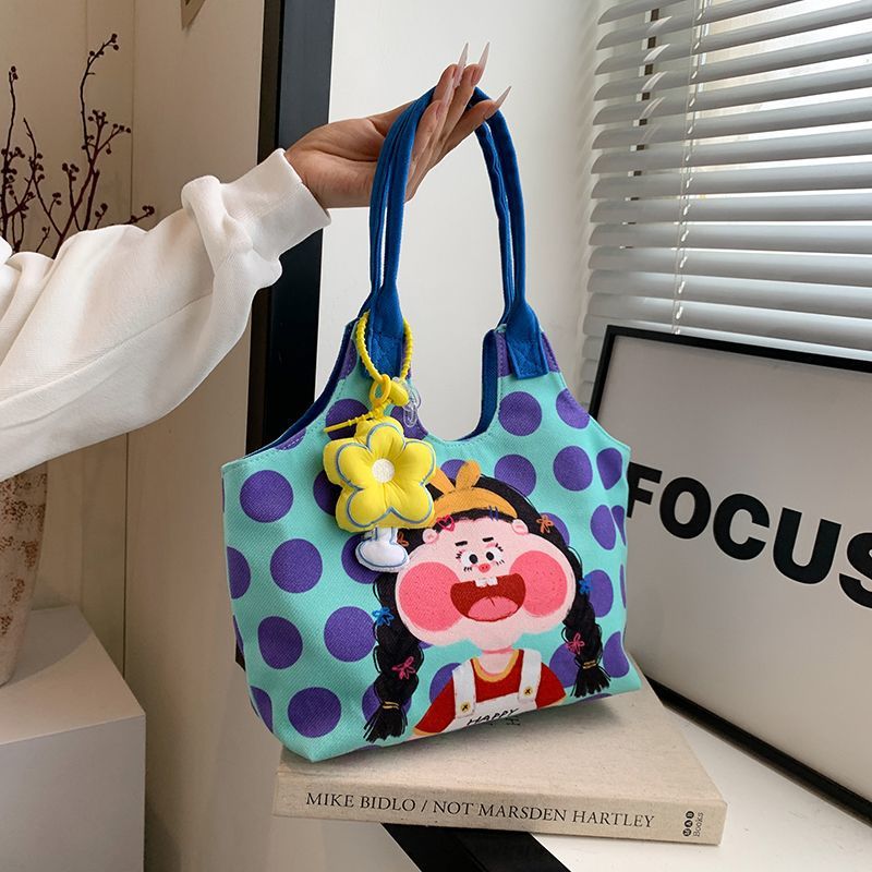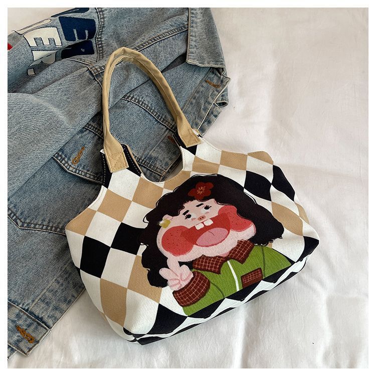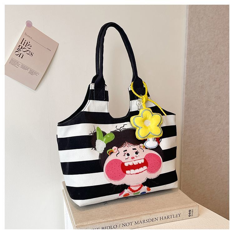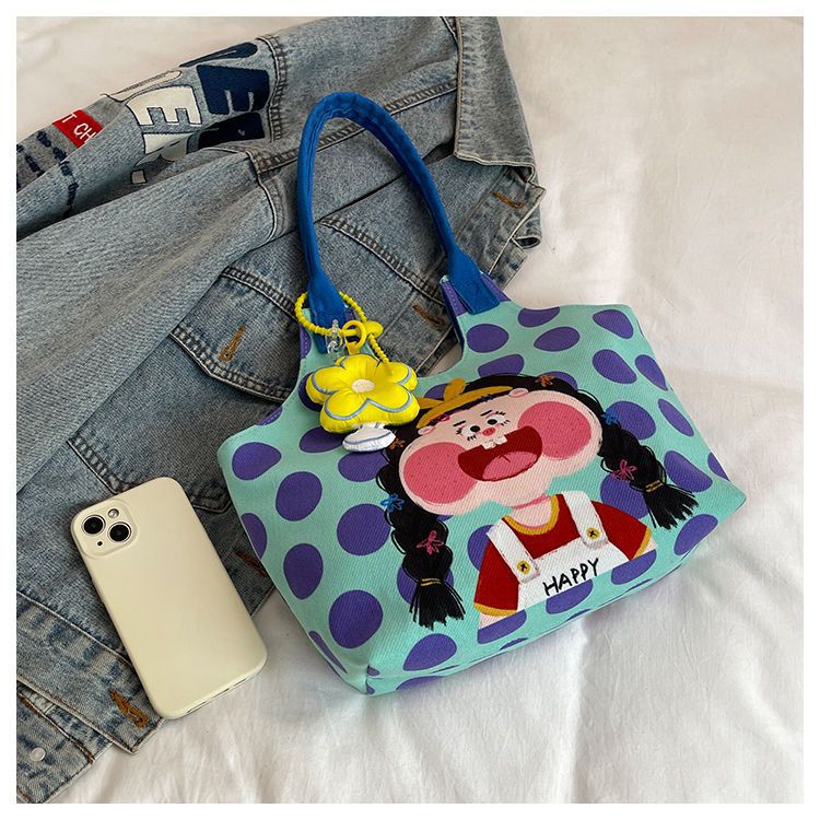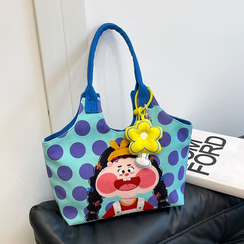 어깨 가방 낙서 만화 새로운 그림 귀여운 캔버스 가방 재미 2024 버킷 핸드백스토어 가기