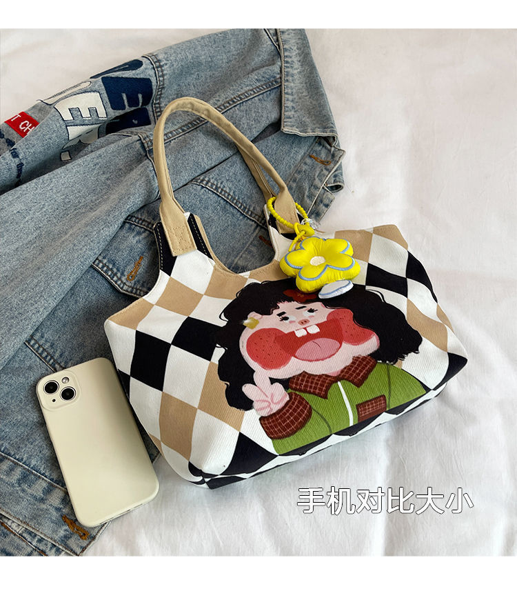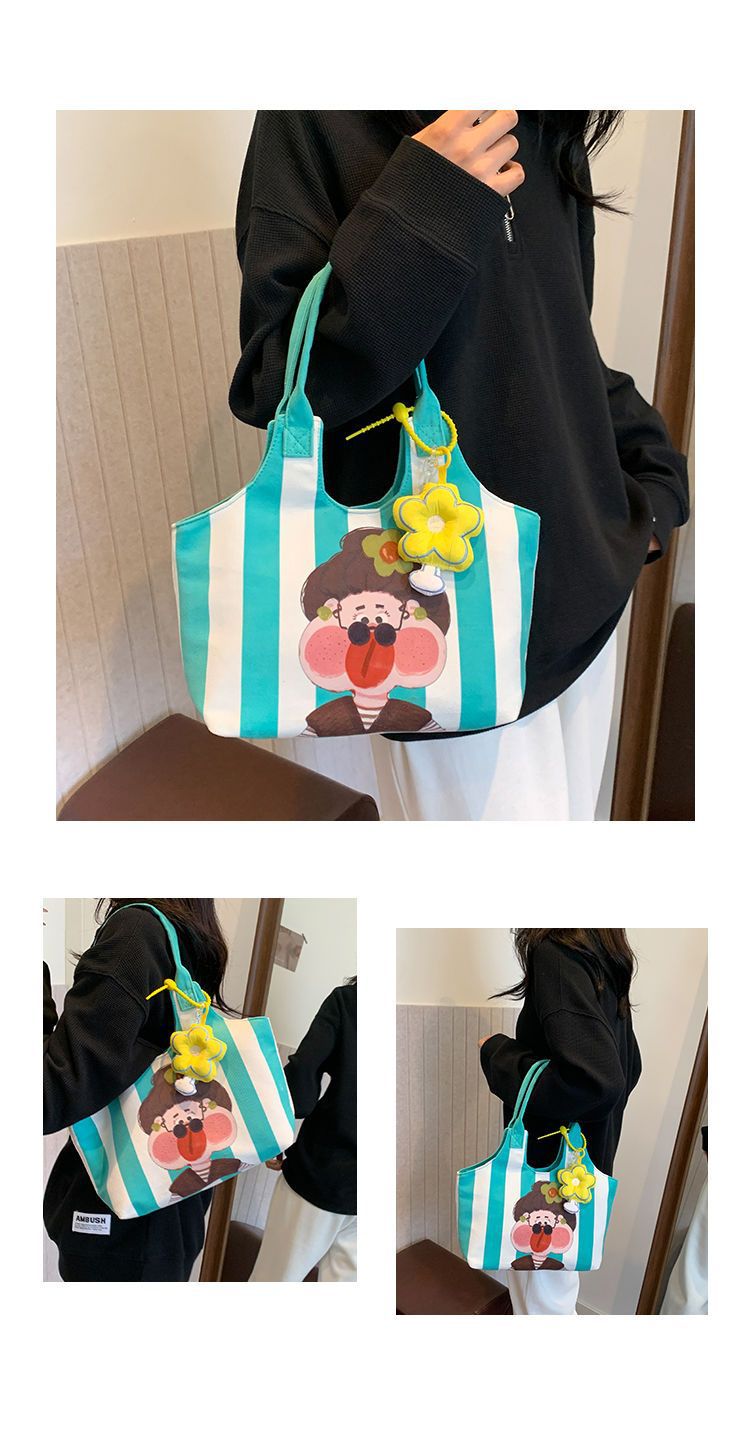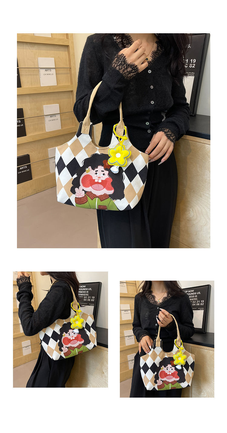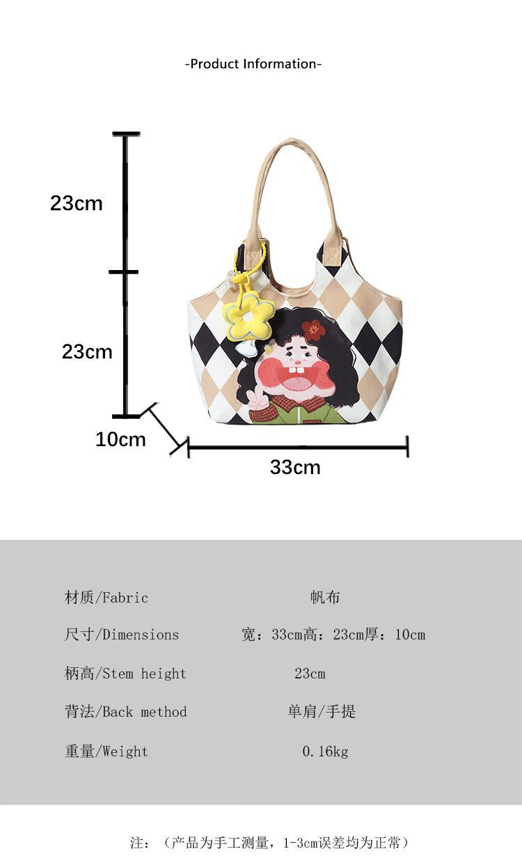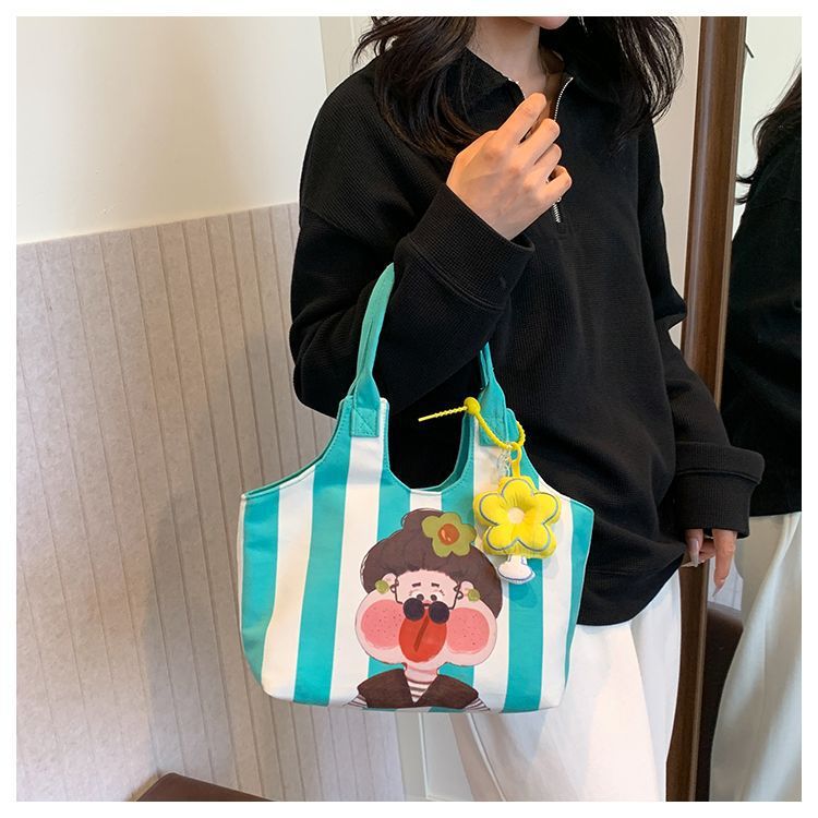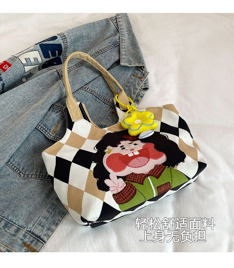 어깨 가방 낙서 만화 새로운 그림 귀여운 캔버스 가방 재미 2024 버킷 핸드백스토어 가기