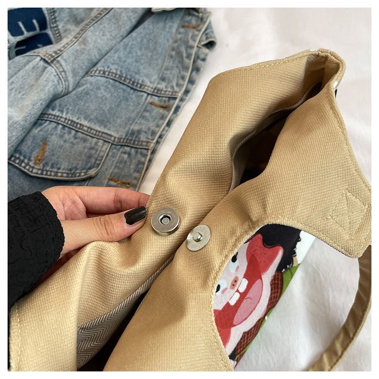 어깨 가방 낙서 만화 새로운 그림 귀여운 캔버스 가방 재미 2024 버킷 핸드백