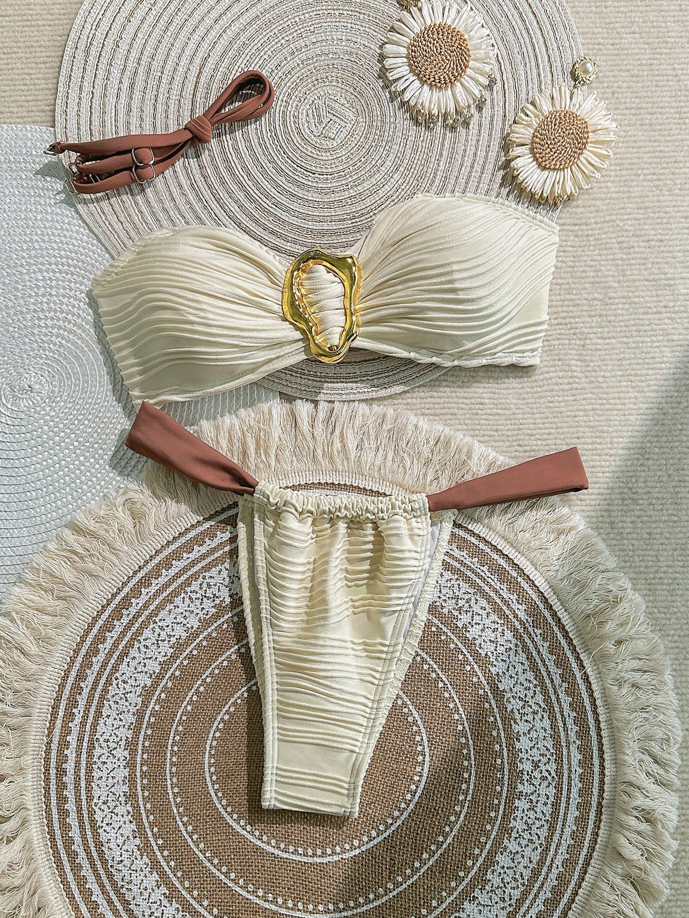 2025 유럽과 미국의 새로운 특수 패브릭 튜브 탑 간단한 분할 비키니 아마존 비치 여성용 온천 수영복