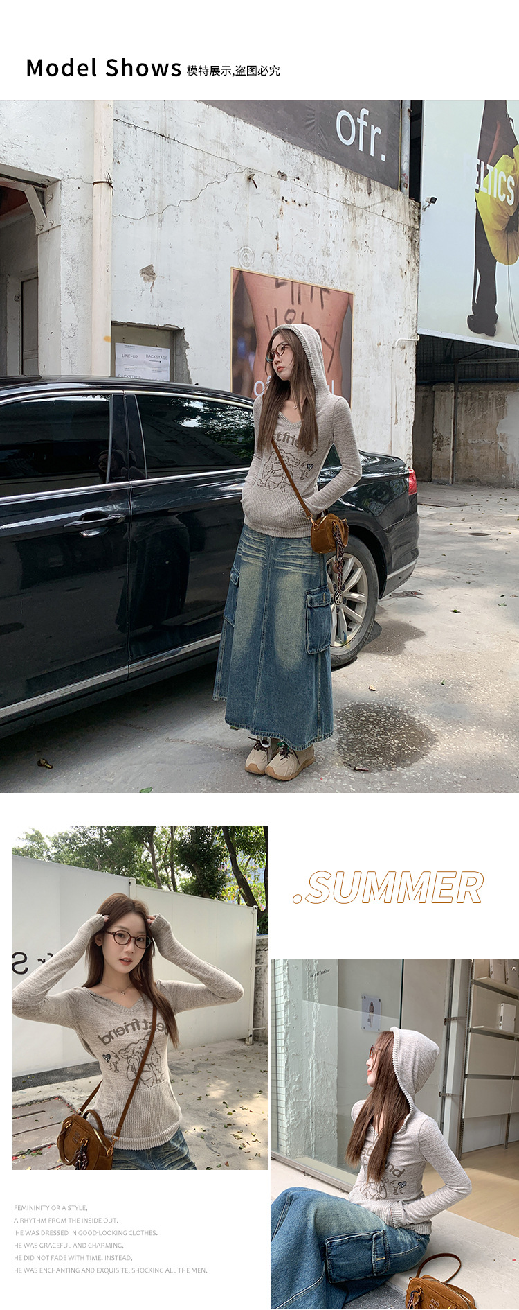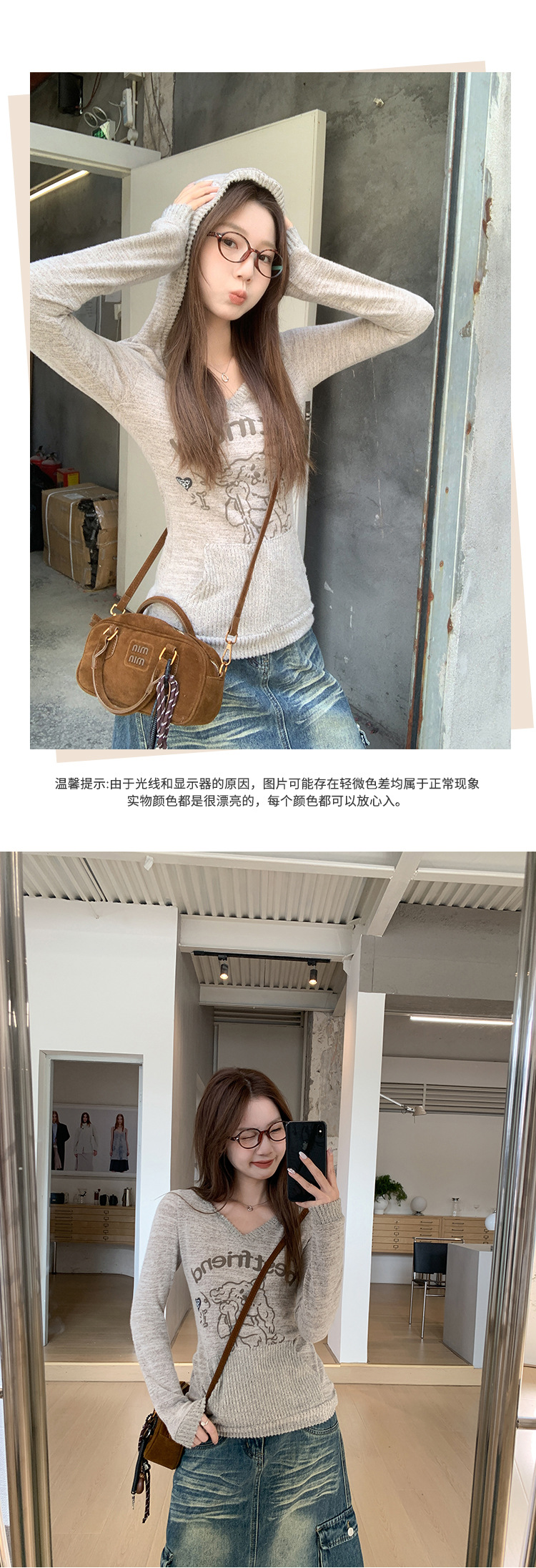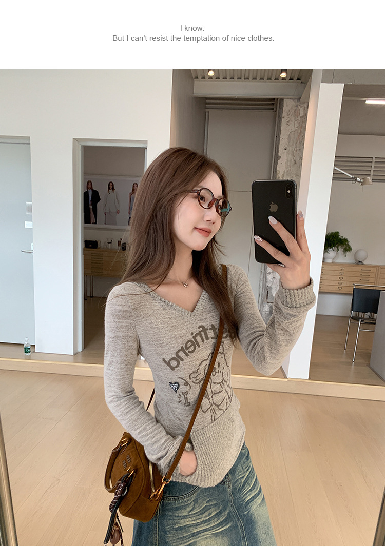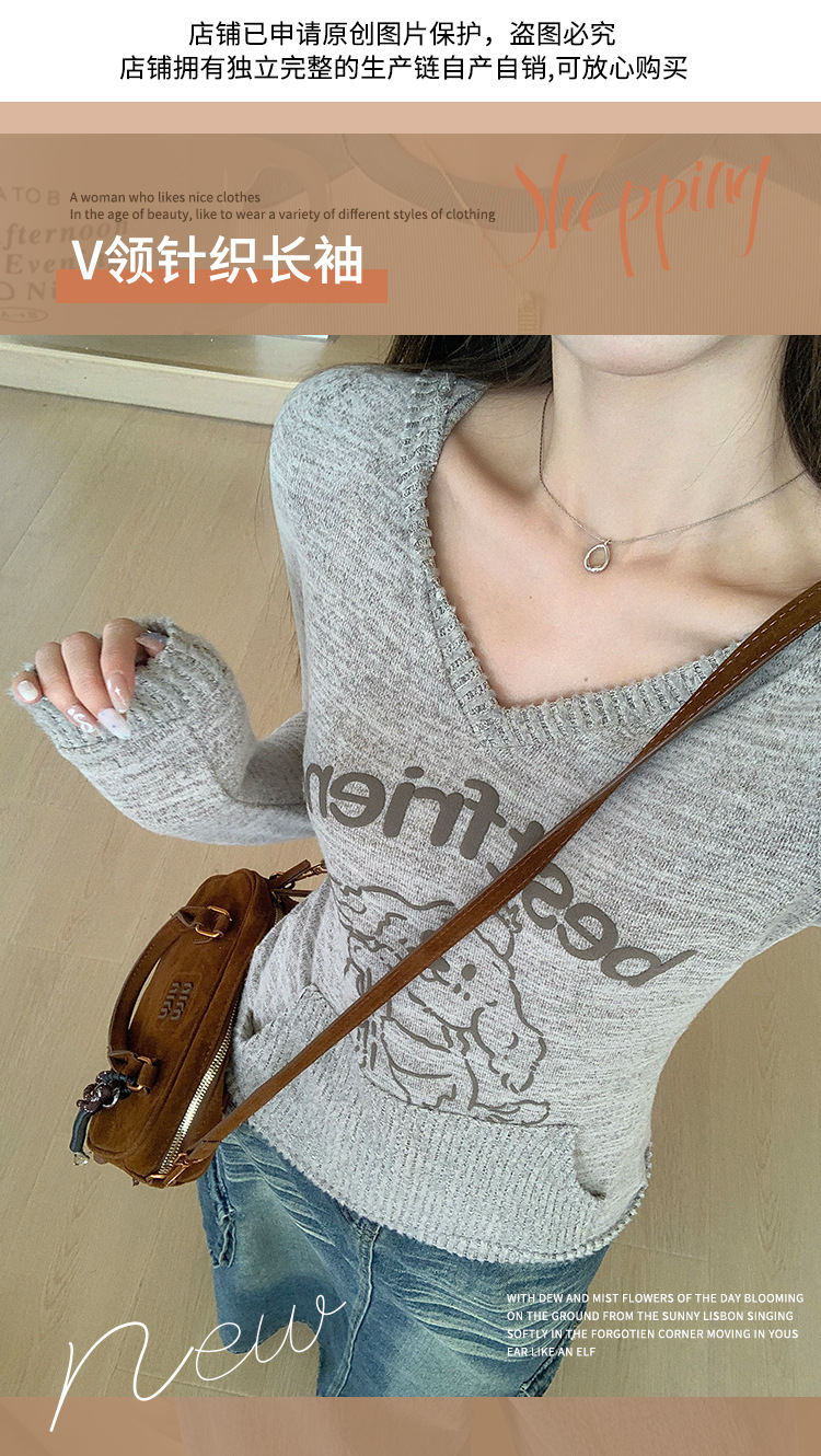 한국식 퓨어 V 넥 쇄골 베이스 니트 스웨터 여성용 봄과 가을 2025 자수 슬림 핏 슬림 핏 이너 탑스토어 가기