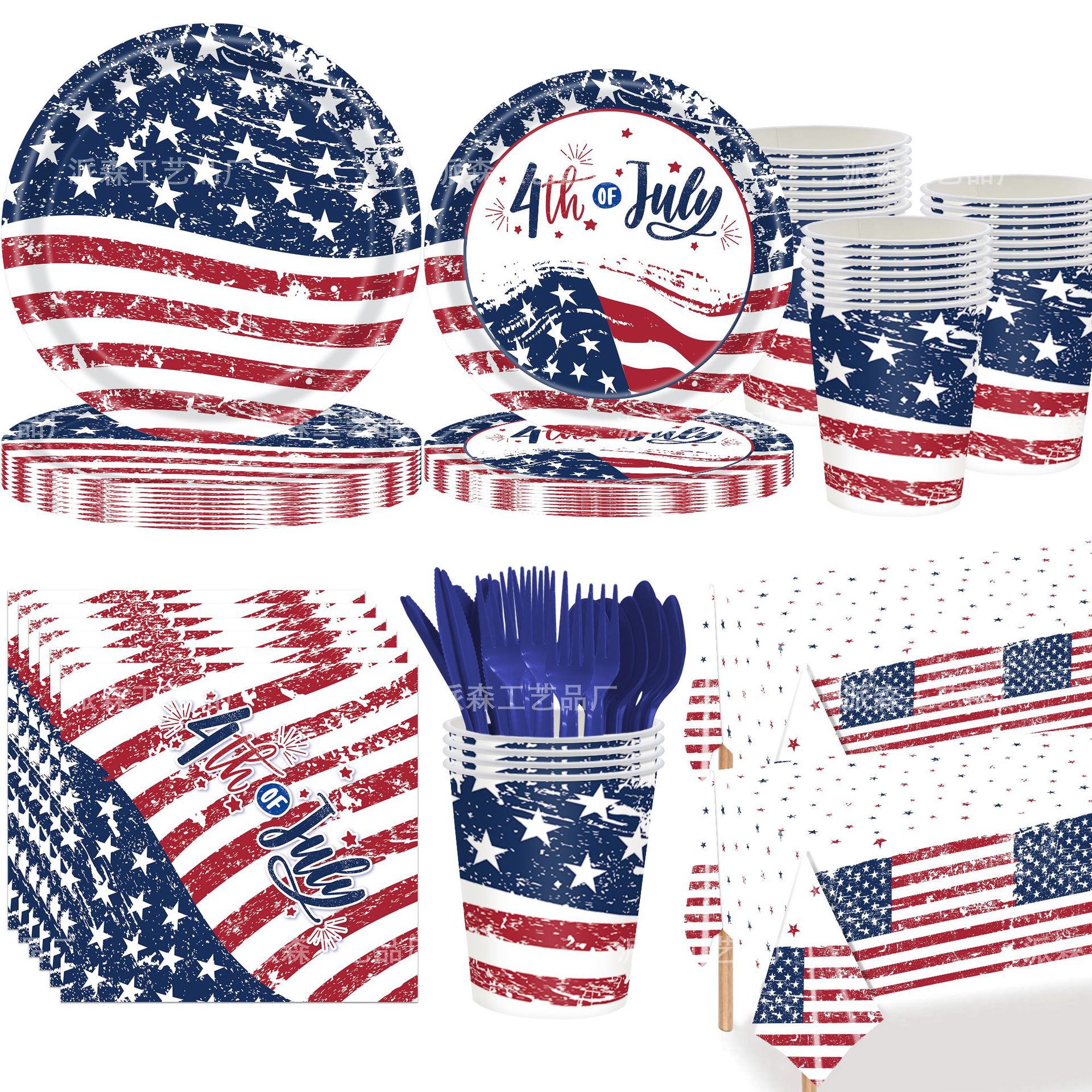 7寸10个,9寸10个,纸杯10个,纸巾20张,刀10个,叉10个,勺10个,桌布137*274cm一条,横幅一条