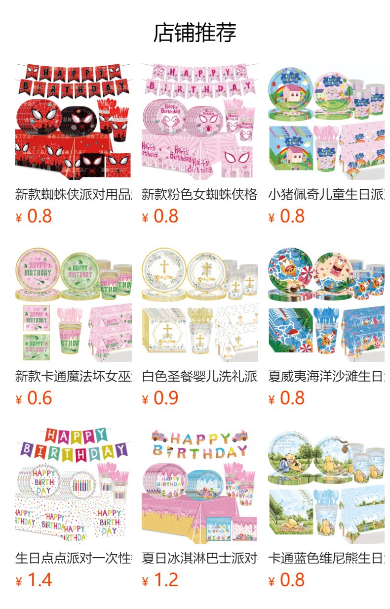 生日,节日,聚会,派对一次性餐具,气氛布置装饰用品等