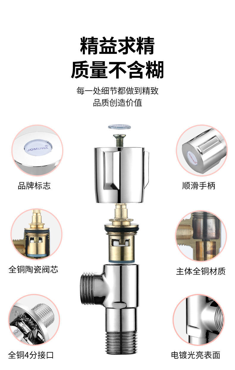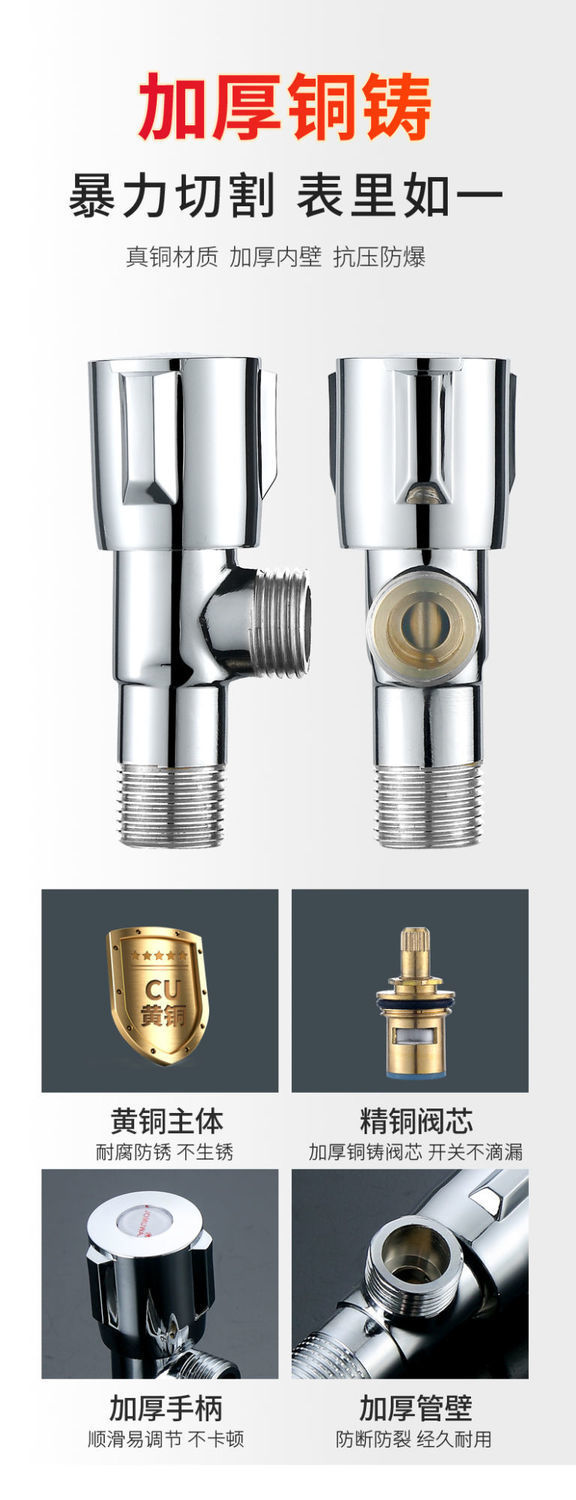 모든 구리 삼각형 밸브 온수 및 냉수 4 포인트 밸브 스위치 가정용 스테인레스 스틸 3 방향 1 2 개의 출구 밸브 변기스토어 가기