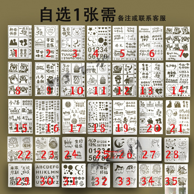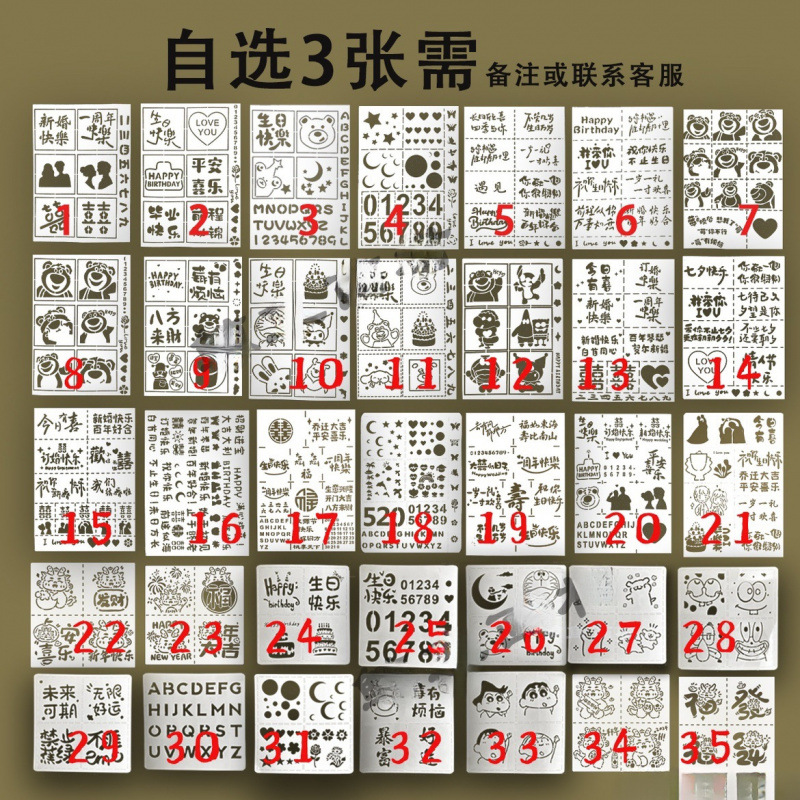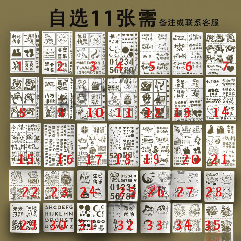 핑 기쁨 유화 스틱 반복적 인 세척 물 10 수제 신혼의 이색 디지털 10 생일 중공 템플릿스토어 가기