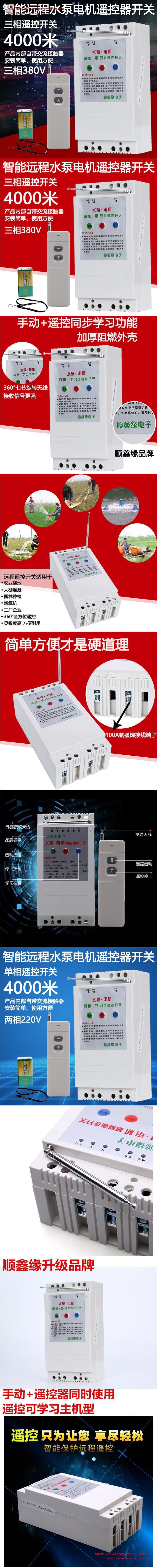 220V380V 워터 펌프 무선 원격 제어 스위치 3 상 전원 차단 보호 모터 붓기 원격 제어 난연 쉘스토어 가기