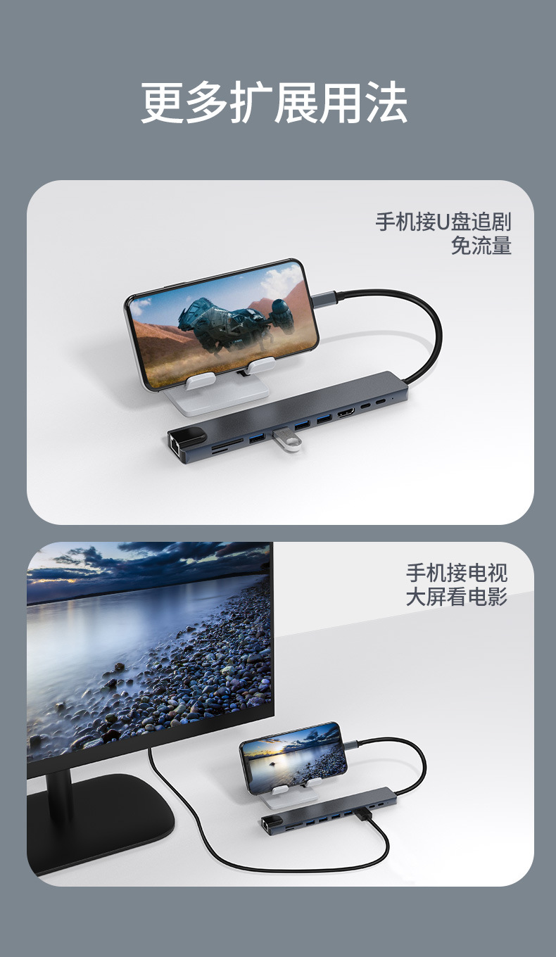 유형 c-hdmi 확장 도크 usb-c 3.0hub 노트북 컨버터 10 in -1 허브 pd 전원 공급 장치스토어 가기