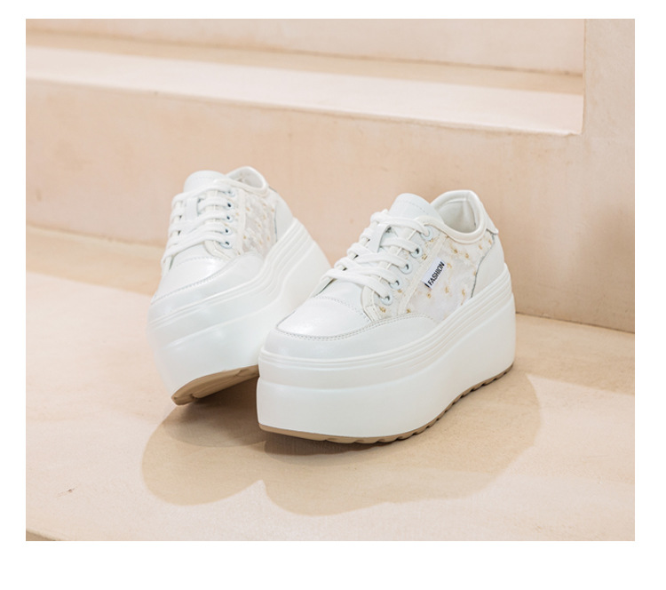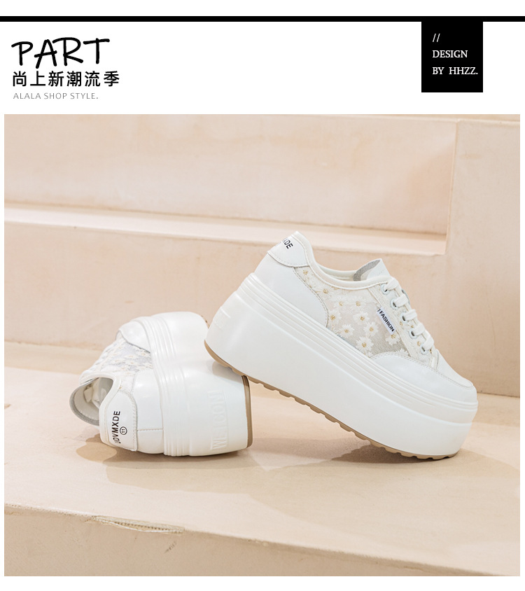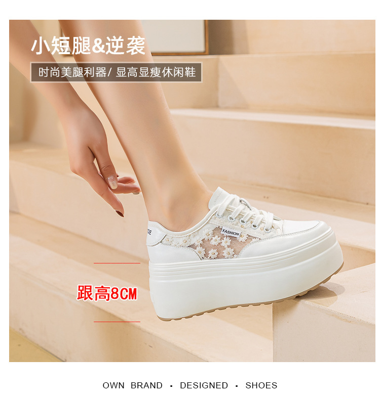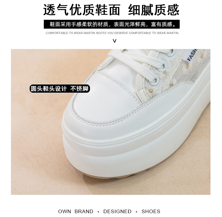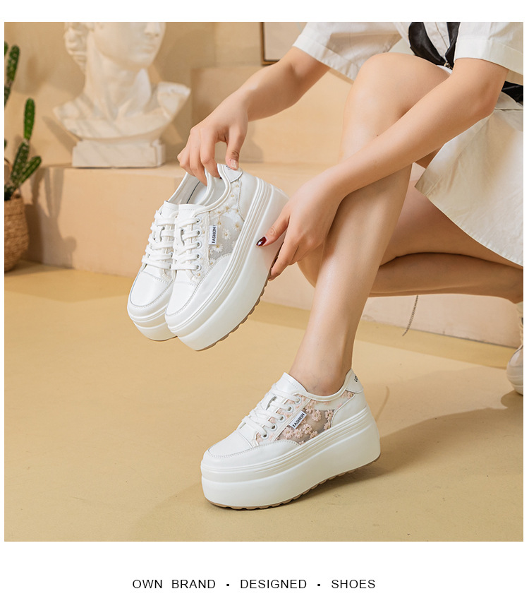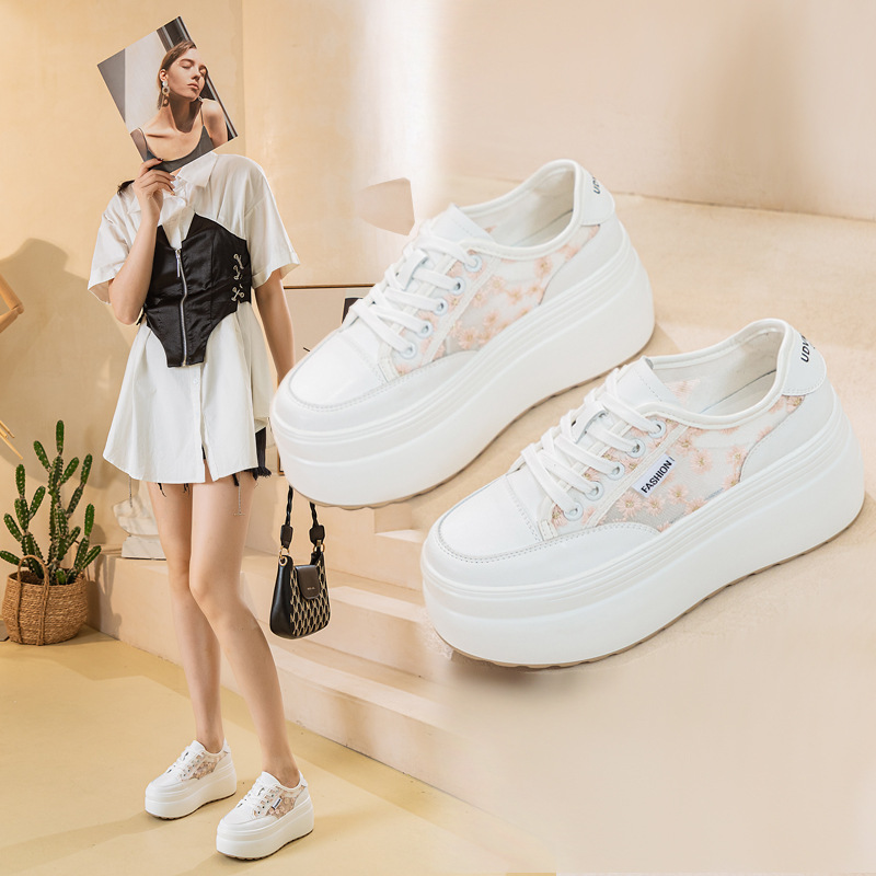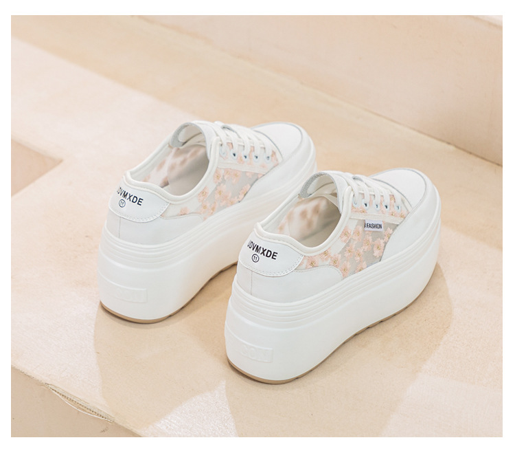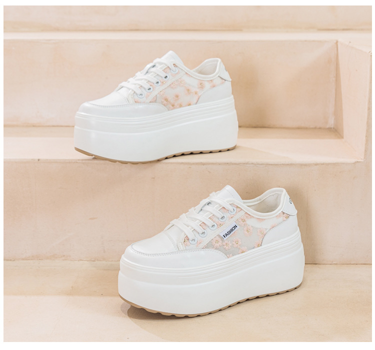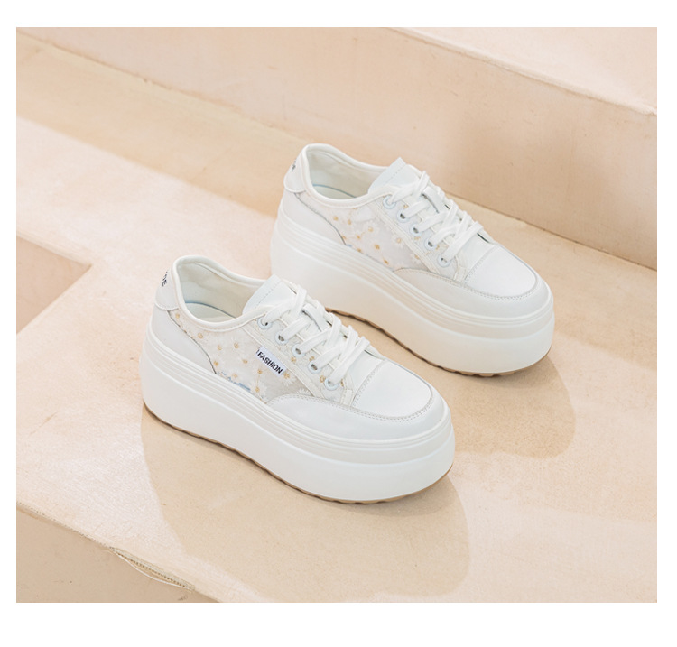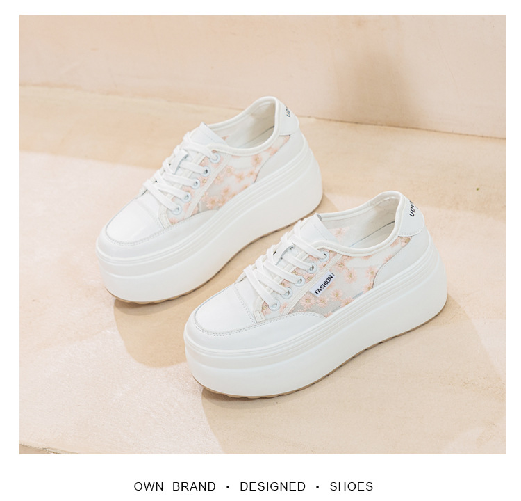 플랫폼 신발 여성의 2025 봄과 여름 새로운 두꺼운 밑창 캐주얼 신발 메쉬 통기성 화이트 신발 단색 신선한 꽃