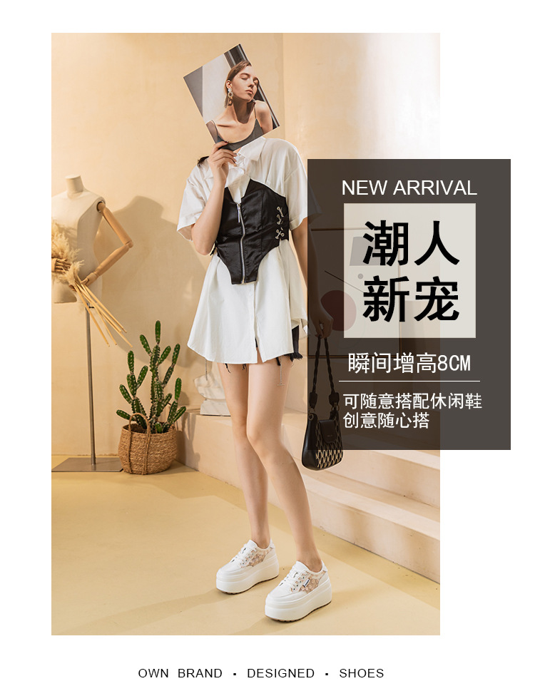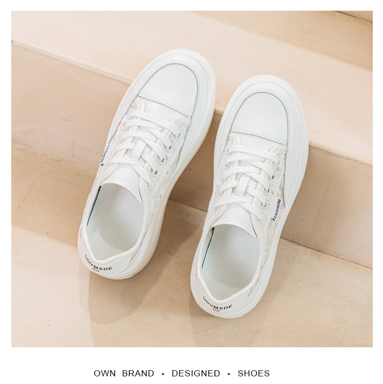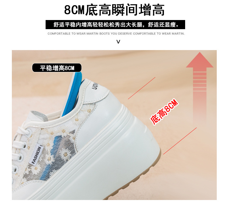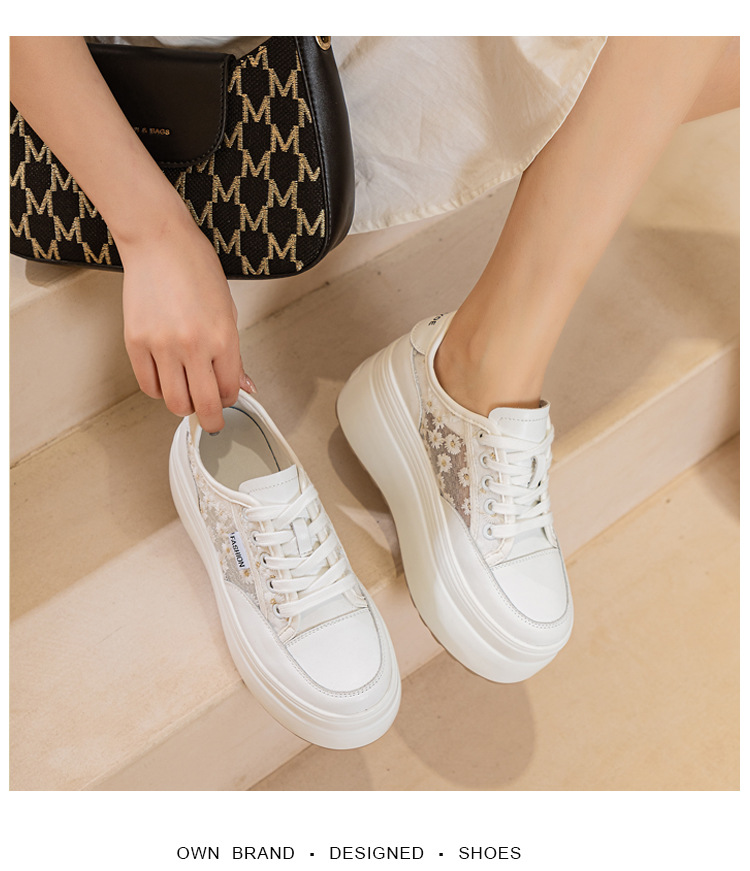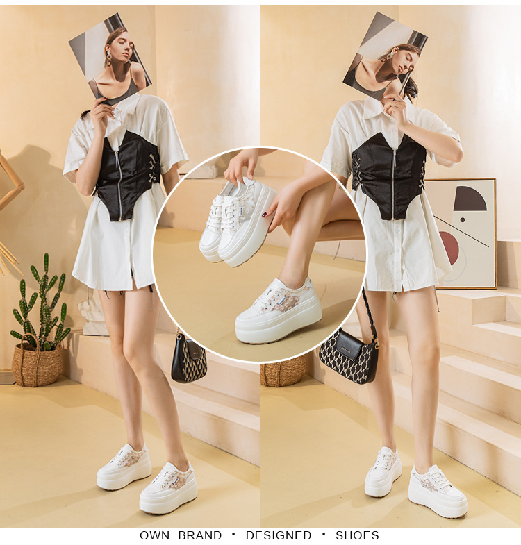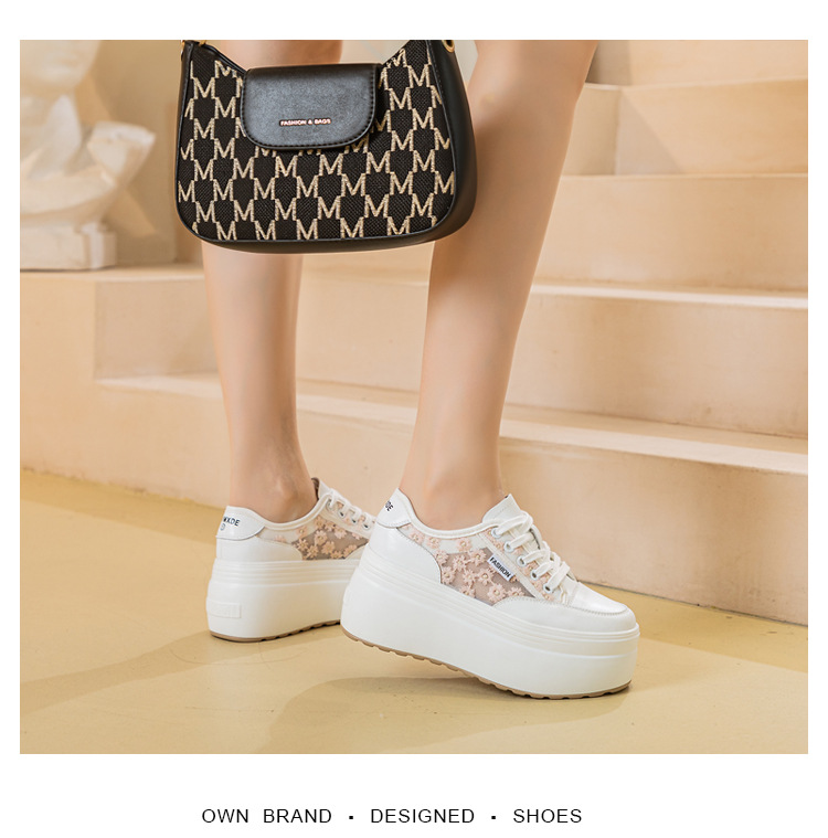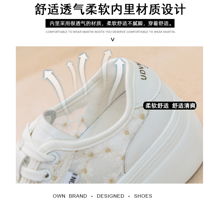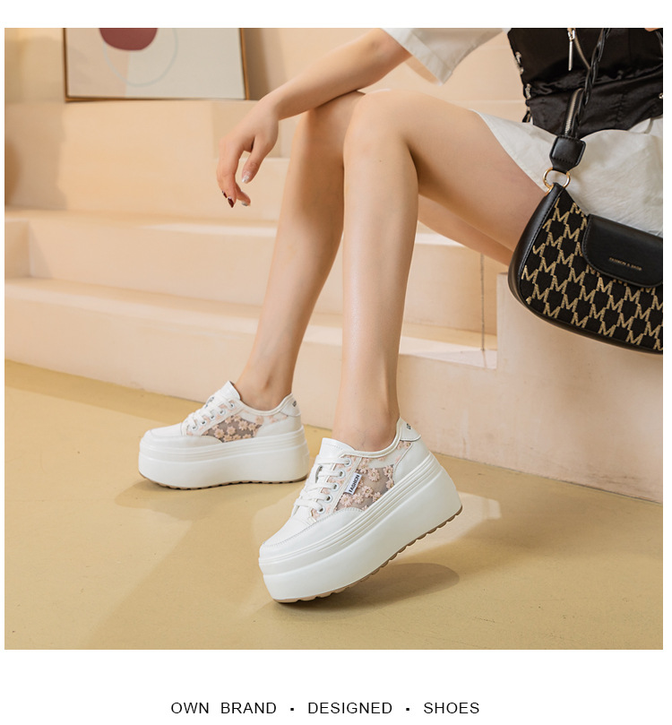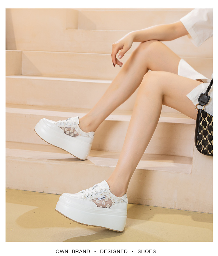 플랫폼 신발 여성의 2025 봄과 여름 새로운 두꺼운 밑창 캐주얼 신발 메쉬 통기성 화이트 신발 단색 신선한 꽃