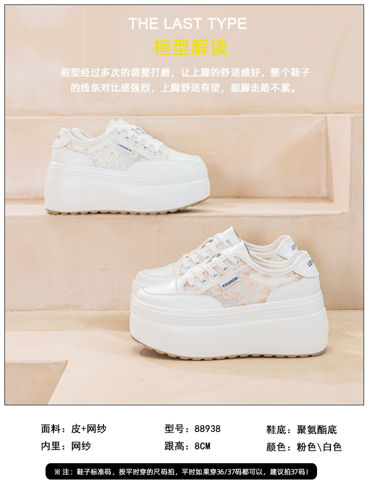 플랫폼 신발 여성의 2025 봄과 여름 새로운 두꺼운 밑창 캐주얼 신발 메쉬 통기성 화이트 신발 단색 신선한 꽃스토어 가기