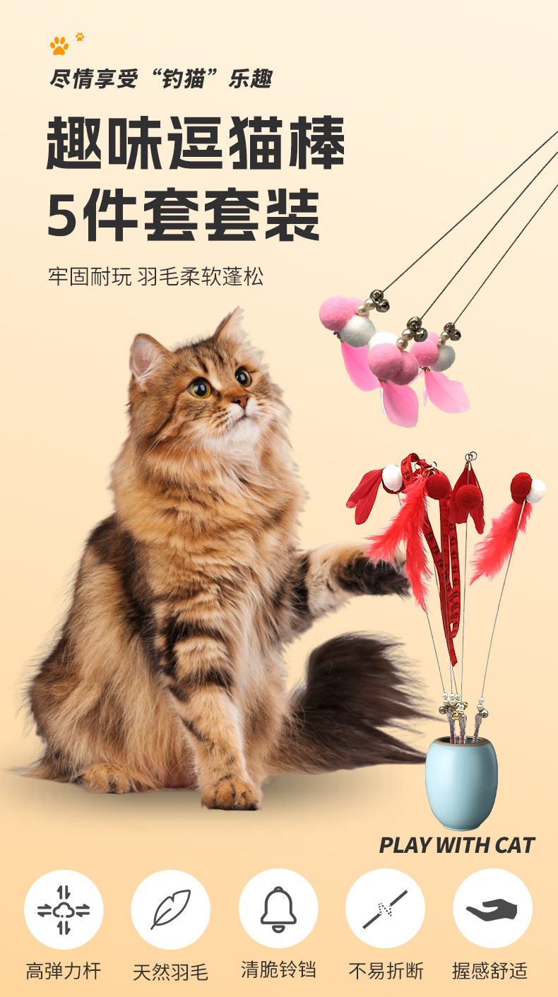 고양이 애타게 고양이 스틱 벨 새끼 고양이 물린 저항 교체 머리 티즈 고양이 장난감 용품 도매로 hi에서 지루함 인공물을 덜어줍니다.스토어 가기