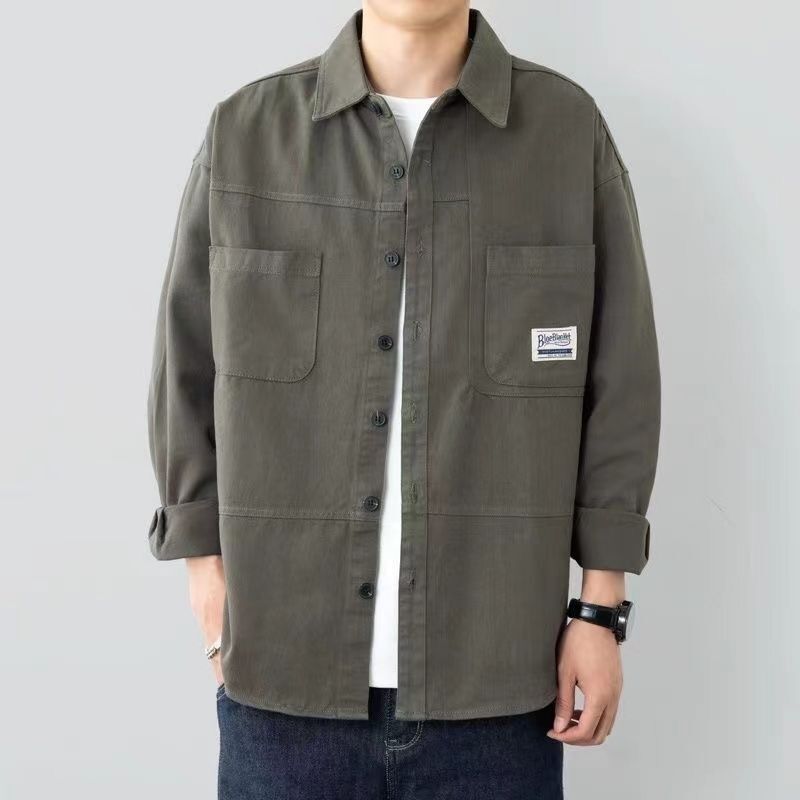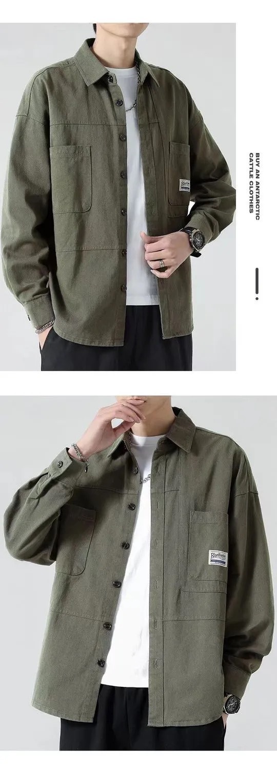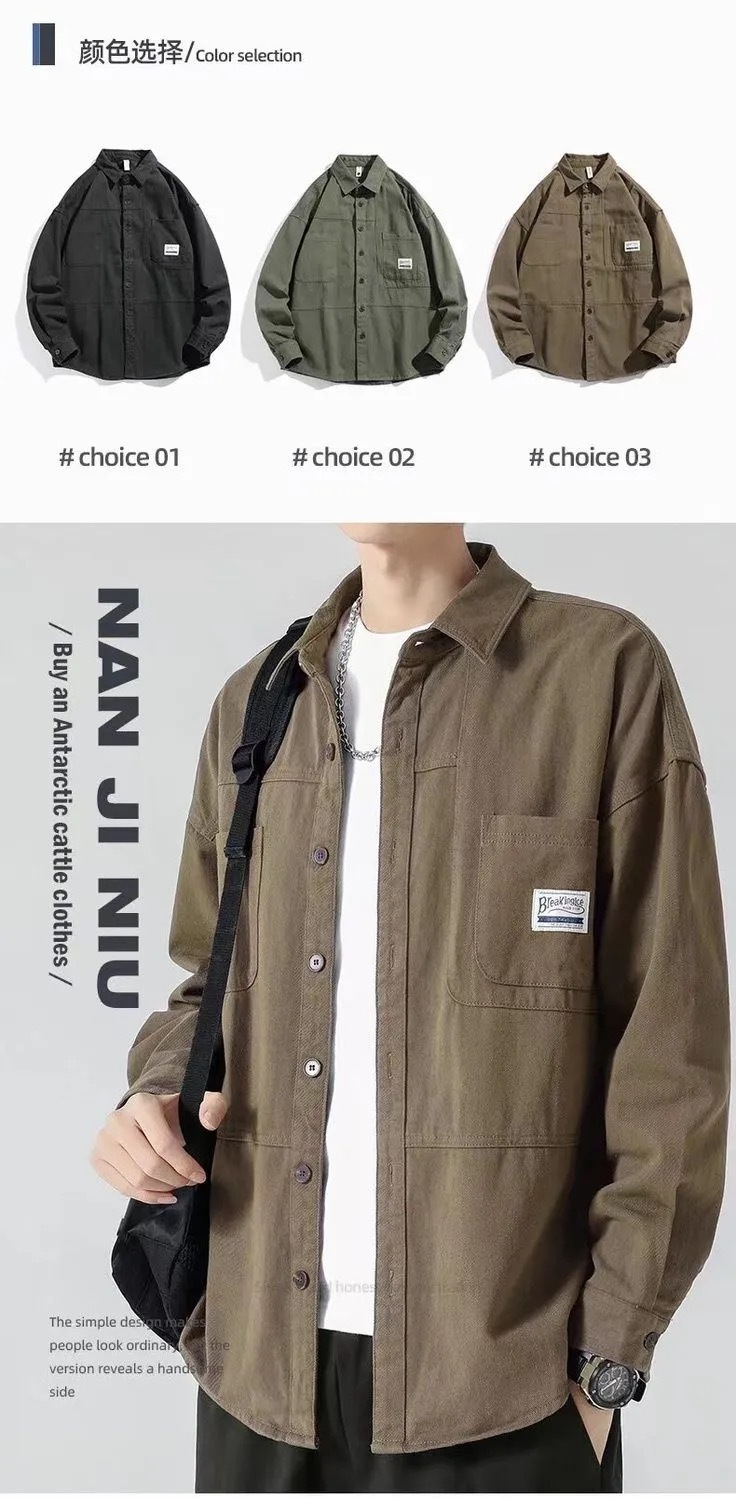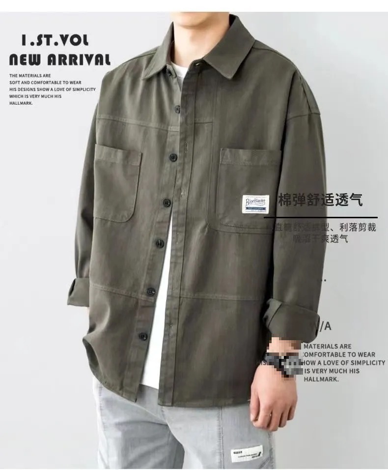 코튼 뉴 스타일 작업 셔츠 남자의 봄과 가을 정사이즈 코트 셔츠 느슨한 긴 소매 가을과 겨울 카디건 재킷